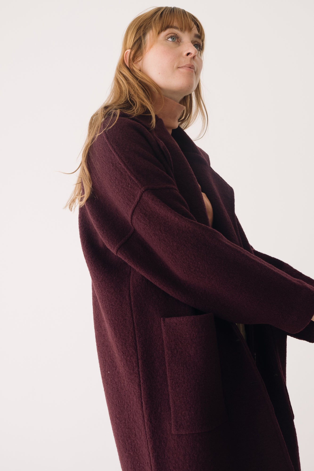 The perfect Coat for those who seek warmth with elegance, sustainability, and comfort without compromising on design. Sophisticated and timeless, it has been thoughtfully designed to stay with you for many years without ever going out of style. Featuring an oversized cut with dropped shoulders, a notched lapel collar, and spacious patch pockets, it’s a statement of effortless elegance. Crafted from Woolmark- and RWS-certified merino wool knit, it ensures animal welfare and an ethical, environmentally respectful production process. The fabric has body yet feels wonderfully lightweight and warm—perfect for cold days. Finished with biodegradable corozo buttons and lovingly made in our atelier in Tàrrega, Spain. The purple shade evokes depth, introspection, and mystery—a color that connects with our inner world, creativity, and sensitivity.