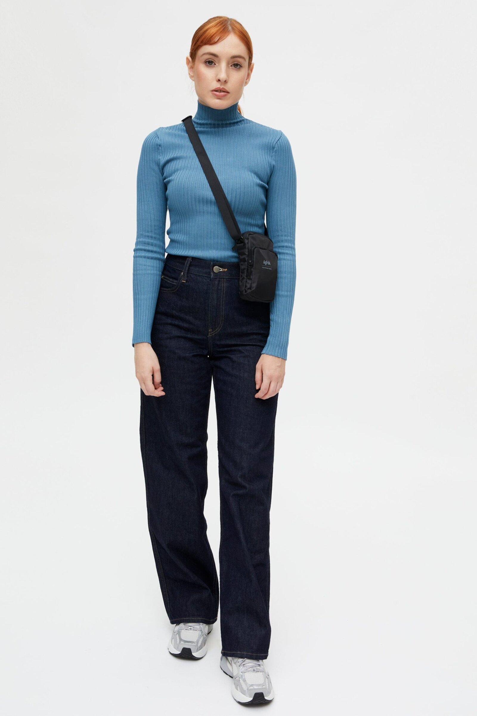 Rectangular shoulder bag to carry only the essentials. It has two separate compartments for better organisation. Holds phones up to 7″.  Zipped clousure. Lightweight and adjustable cotton strap.