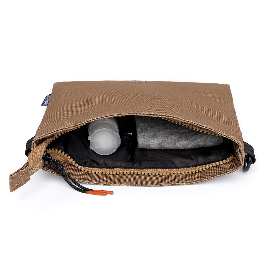 Multi-purpose shoulder bag with cotton shoulder strap. With a large main compartment, zipped pocket inside and a quick access back pocket, the Arizona can be used as a shoulder bag, as a document/small item holder, or as a toiletry bag when the strap is removed. Lightweight and adjustable cotton strap.