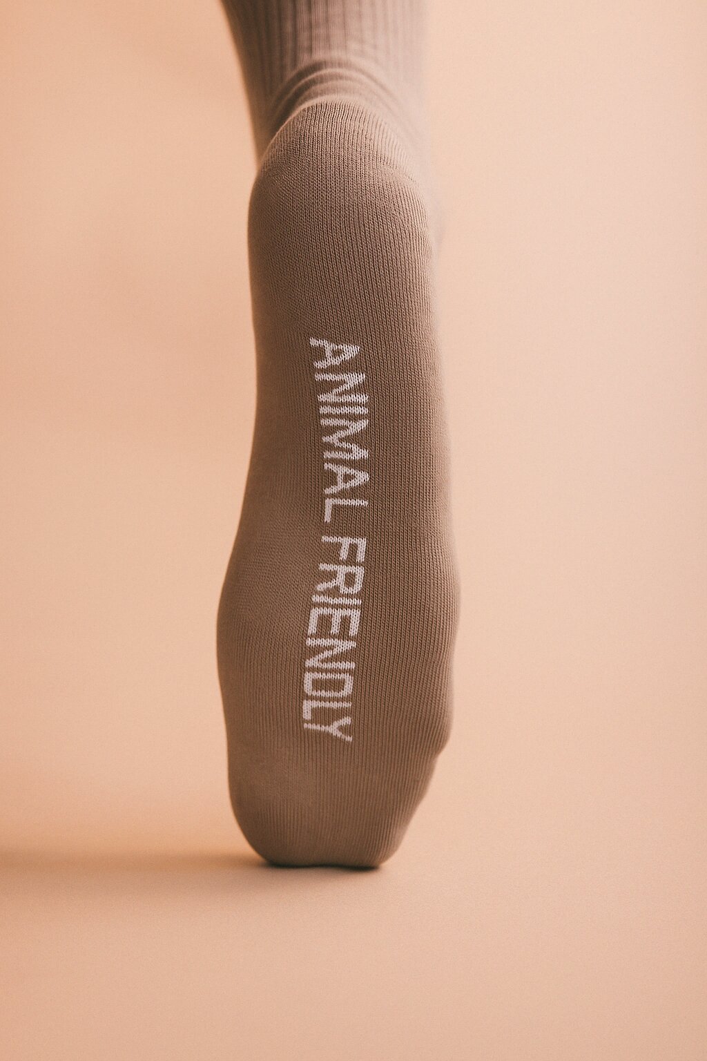 Step into softness with our beige organic cotton socks. Subtly stylish and sustainably made, they feature the NAE logo on the leg and “animal friendly” on the sole—perfect for everyday comfort with a conscious touch. Crafted with care in Portugal.