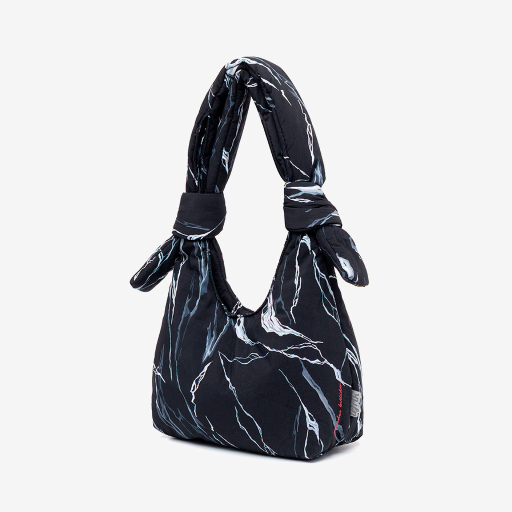 This collaboration is a tribute to nature’s beauty and resilience, inspired by rocks and their textures. The print represents a “stone bag”, reflecting how we often fill our bags with so many things that they sometimes feel heavier than a stone. But at the same time, it also plays with the concept that a bag provides a sense of security and protection, much like the strenght and solidity of a rock.