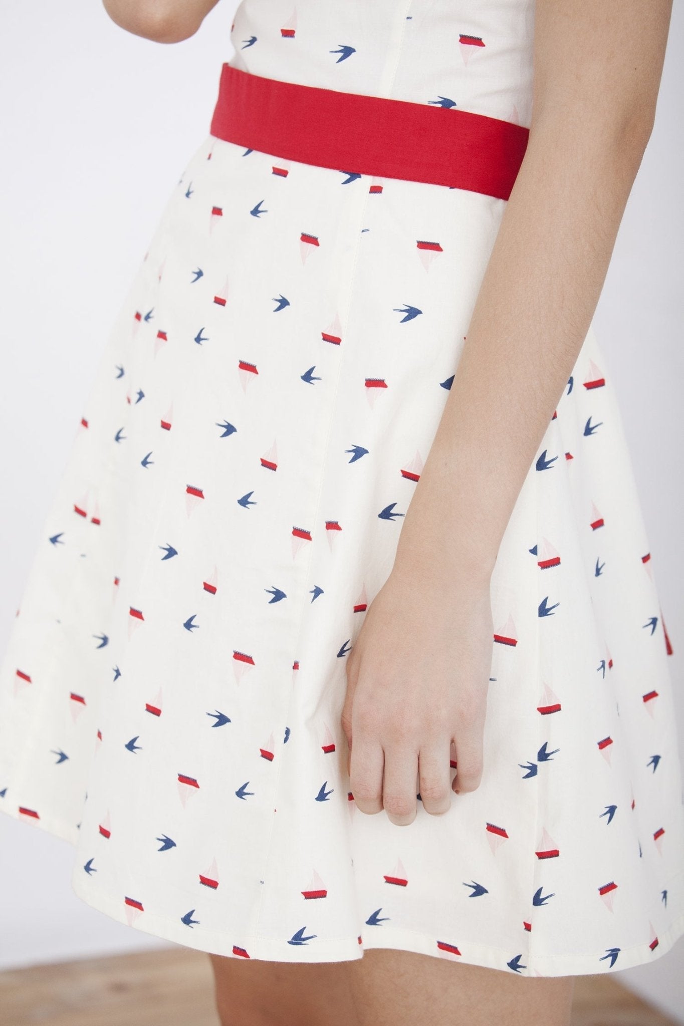 Poplin dress with boat print and a very soft cotton lining. It fits perfectly with the elastics on the back. This garment is made of 100% Organic Fairtrade Certified Cotton