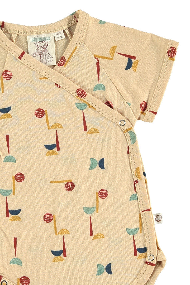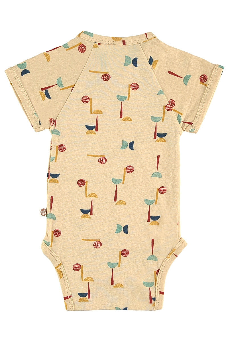 Body kimono de punto estampado abstracto inspirado en Lucienne Day. Todas nuestras prendas están confeccionadas libres de tóxicos y son hipoalergénicas para la suave y delicada piel de tu pequeñx.