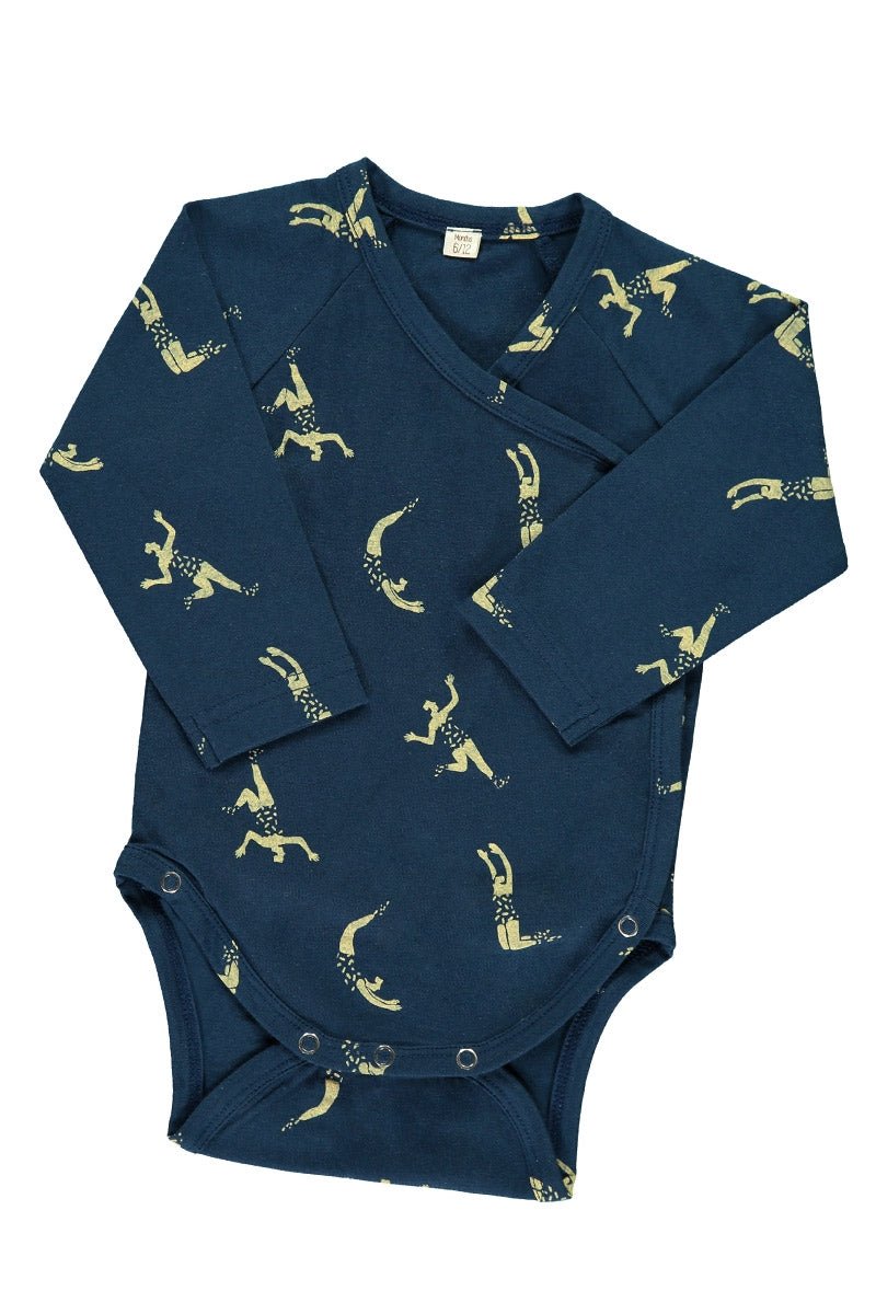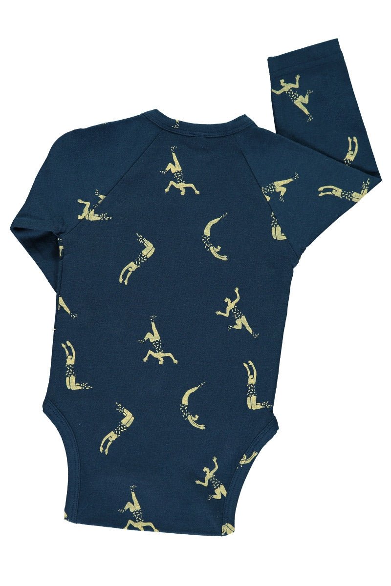 Body kimono con manga larga ranglán en color azul marino y estampado acróbatas inspirado en Circus.