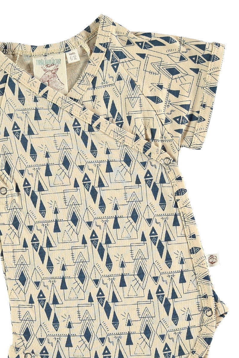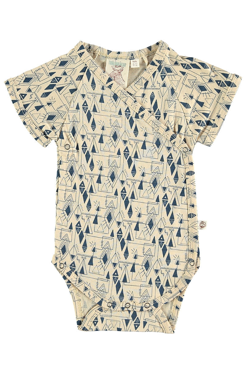 Body kimono de punto estampado geométrico inspirado en Lucienne Day. Todas nuestras prendas están confeccionadas libres de tóxicos y son hipoalergénicas para la suave y delicada piel de tu pequeñx.