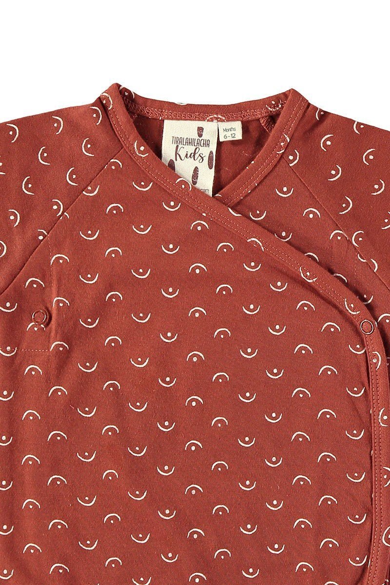 Short-sleeved knitted baby kimono with nickel-free clasps. Its red tits print from the Kudumbam collection, which means family in Tamil, inspired by the core values that move us at Tiralahilacha, gives the garment a unique and special touch. It feels very soft and pleasant on the skin. In addition, it is made free of toxins and is hypoallergenic.