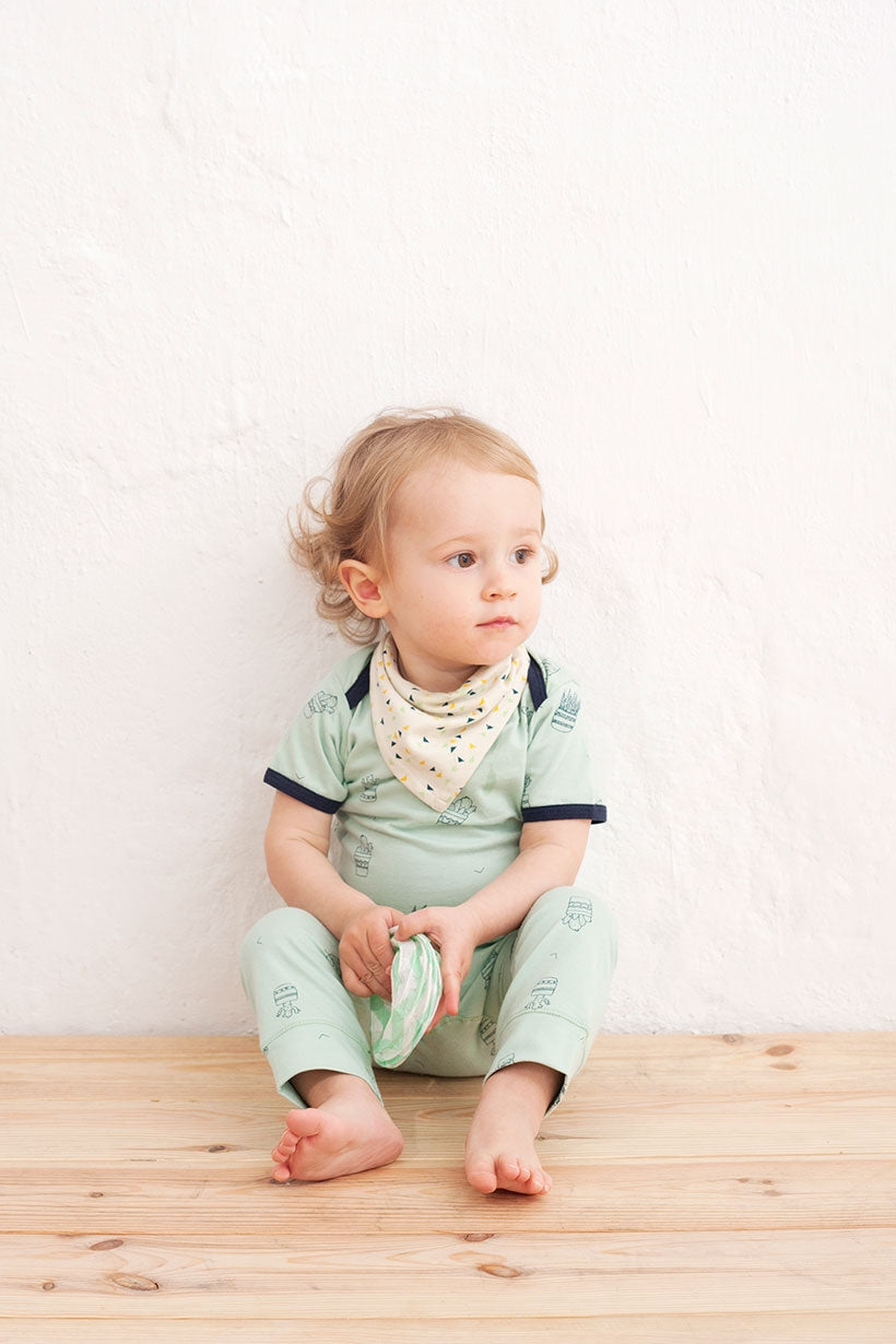 Body verde con estampado de cactus y contraste en azul marino. 100% algodón orgánico de Comercio Justo Certificado. Designed with ♥ in Barcelona. What size am ?