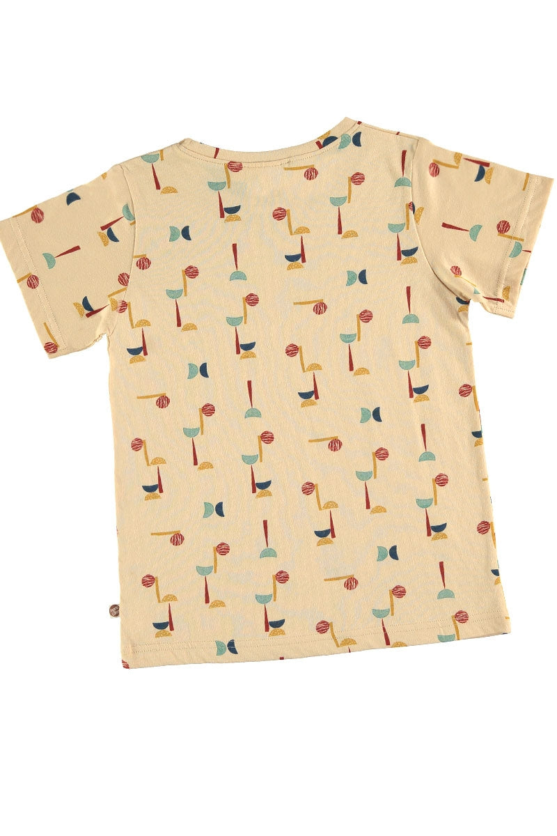 Camiseta de punto manga corta unisex con estampado abstracto inspirado en Lucienne Day. Todas nuestras prendas están confeccionadas libres de tóxicos y son hipoalergénicas para la suave y delicada piel de tu pequeñx. 5% Elastán 95% algodón orgánico de comercio justo certificado.