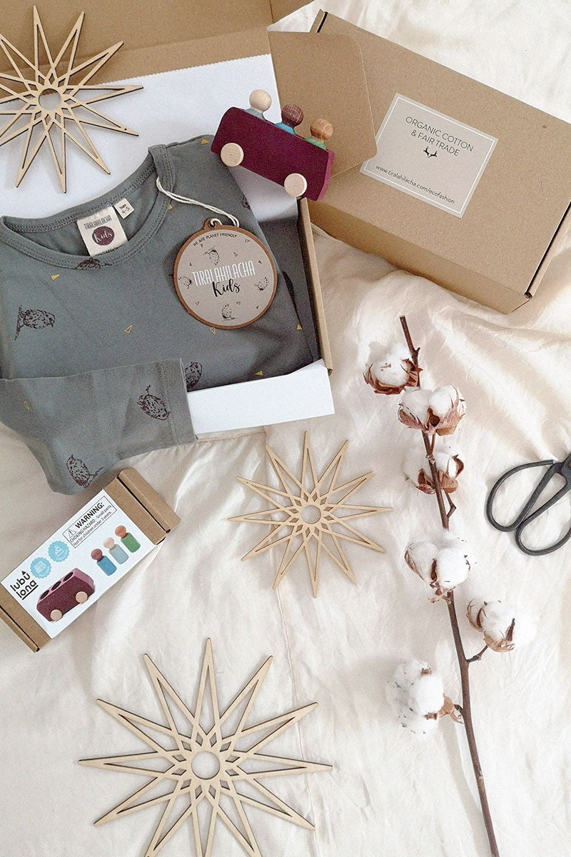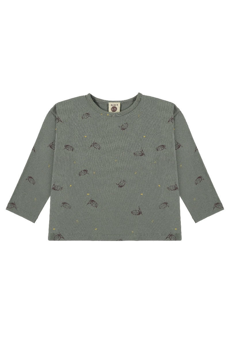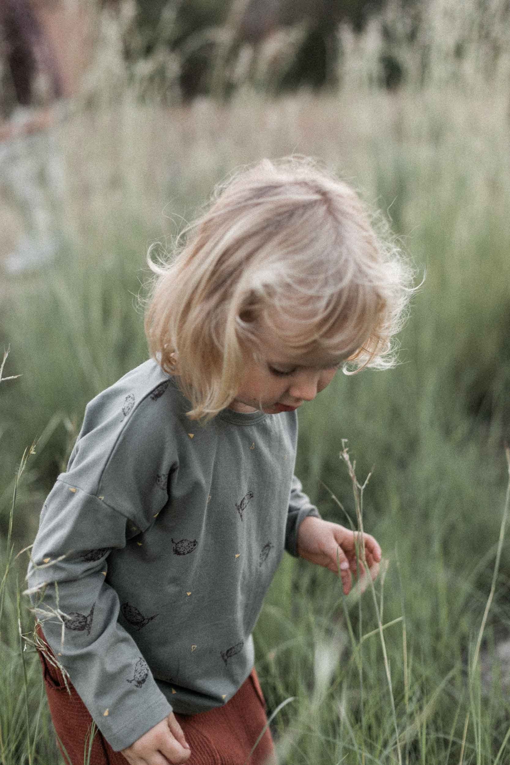 Unisex knitted T-shirt with dropped shoulders and long sleeves. This garment has a loose-fitting design allowing your little one to wear it for a longer period of time. Its birds print in green is inspired by the most essential, our environment, our home. HOME gives it this special touch. All our garments are hypoallergenic and chemical free to take care of your child’s sensitive and delicate skin.