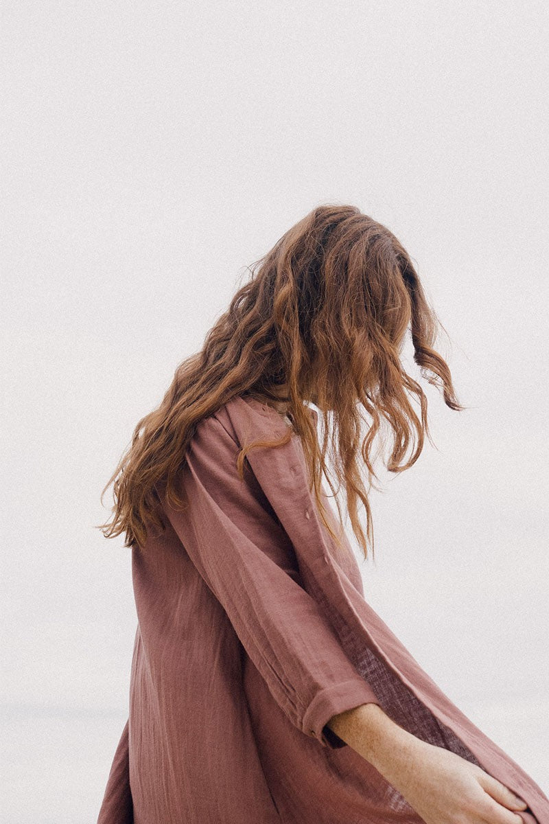 Elisa is a three-quarters sleeve shirt dress in muslin fabric. It has a slit with functional buttons and practical side pockets. Both, casual and elegant in one, choose your favourite style! You can wear it as a dress or as a robe with a T-shirt underneath. It is a wardrobe basic in mauve color that you can combine with an infinite number of garments. It is made of muslin fabric, making it very soft and pleasant to the touch.