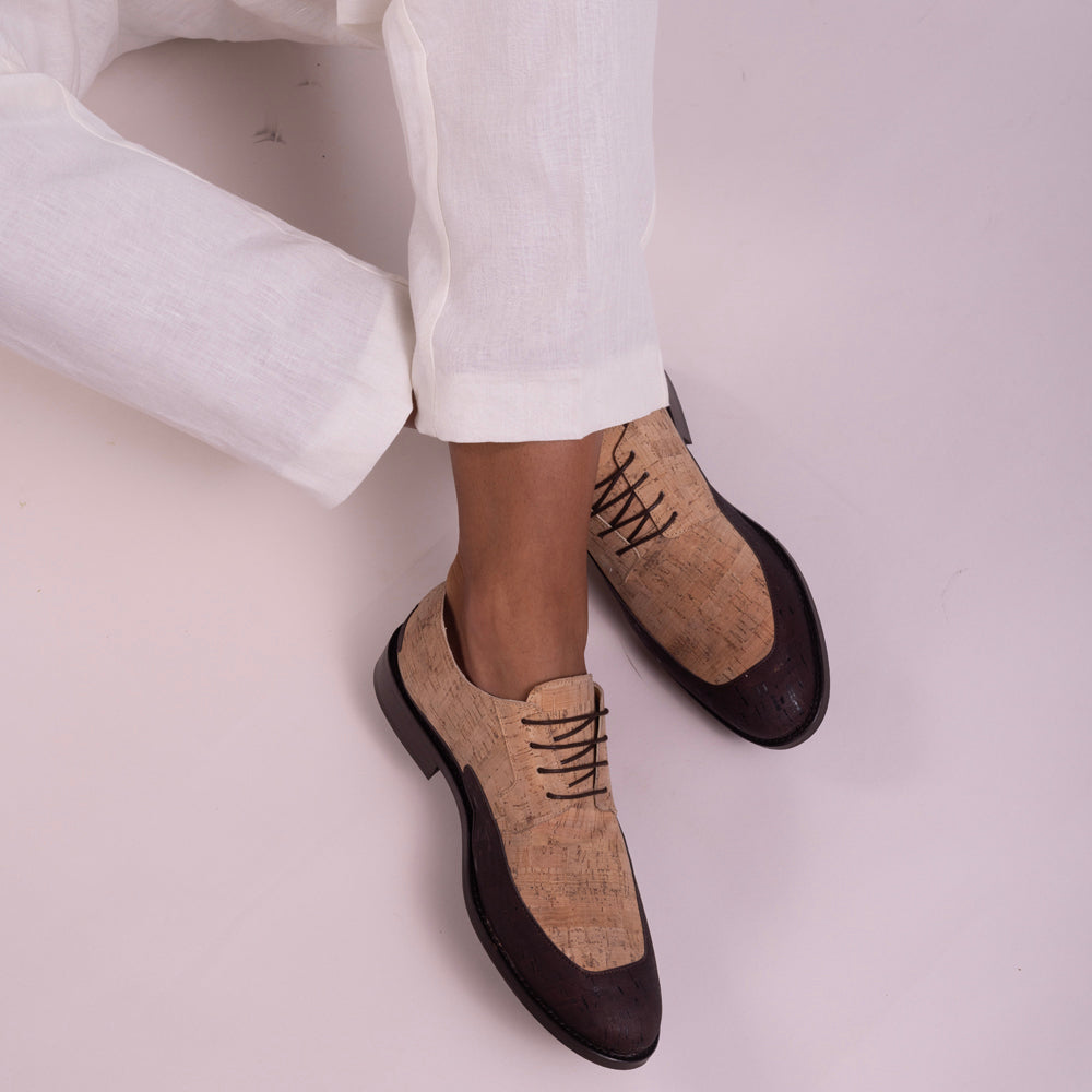 Introducing our distinguished men’s derby shoe, meticulously crafted with sustainable cork materials for a timeless elegance. Embrace nature’s beauty with the natural and chocolate cork accents, adding a touch of sophistication to every step. Our vegan shoes are not only stylish but also eco-conscious, made entirely from cork without compromising on quality or comfort. Elevate your footwear collection with our cork men’s oxford model, where ethical fashion meets refined taste. Step into the future of footwear with our commitment to sustainability and style.