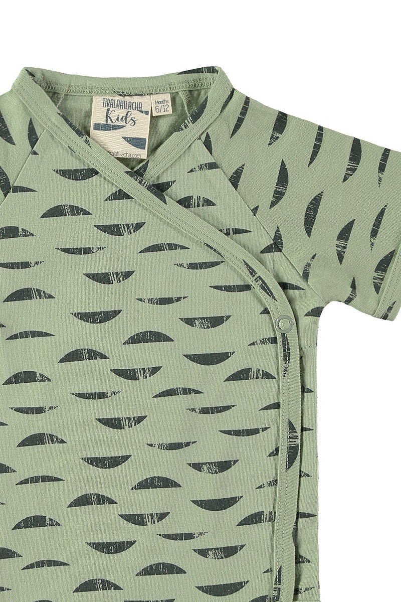 Enar is a short sleeve baby bodysuit in emerald green color with nickel-free clasps. It is a comfortable knitted garment easy to combine with the Esai bib for a complete look. The emerald green water reflections print of the Aqua collection, inspired by one of the essential elements for life, gives it that original and unique touch. All our garments are made free of toxins and are hypoallergenic for your little one’s soft and delicate skin.