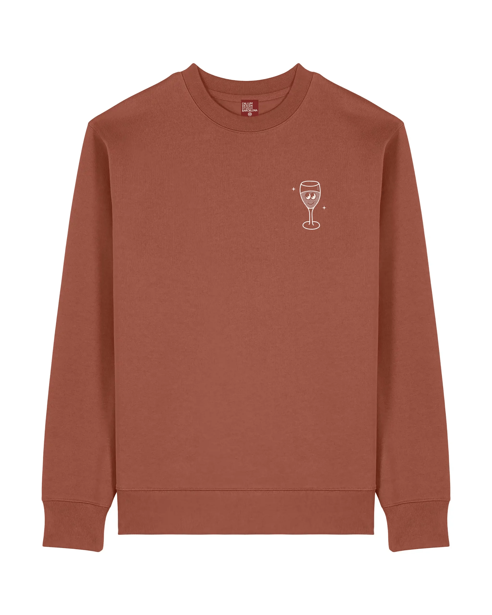 Toast to aging well with this terracotta unisex sweatshirt, featuring a playful animated wine character and the witty phrase «Like A Fine Wine, Better With Time.» Crafted from cosy 350gsm organic cotton in a medium fit, it’s perfect for everyday wear and expertly silkscreened with eco-friendly inks in our Barcelona studio.