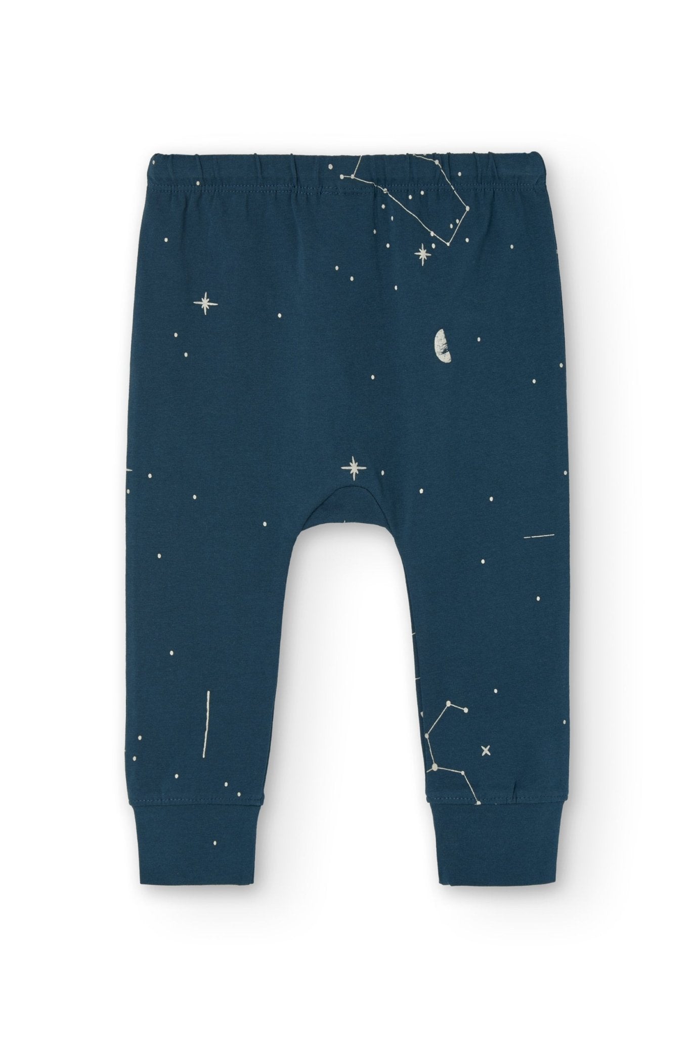 Gala is a pair of long knitted trousers, with an elastic waistband and a loop for a better fit. It is a garment that your baby can wear from autumn to spring. You can combine it with the Griselle bodysuit for a complete look. The midnight blue constellation print, from the AURA collection, conveys strength and light and gives a special and exclusive touch to the garment. All our garments are made free of toxins and are hypoallergenic for your little one’s soft and delicate skin.