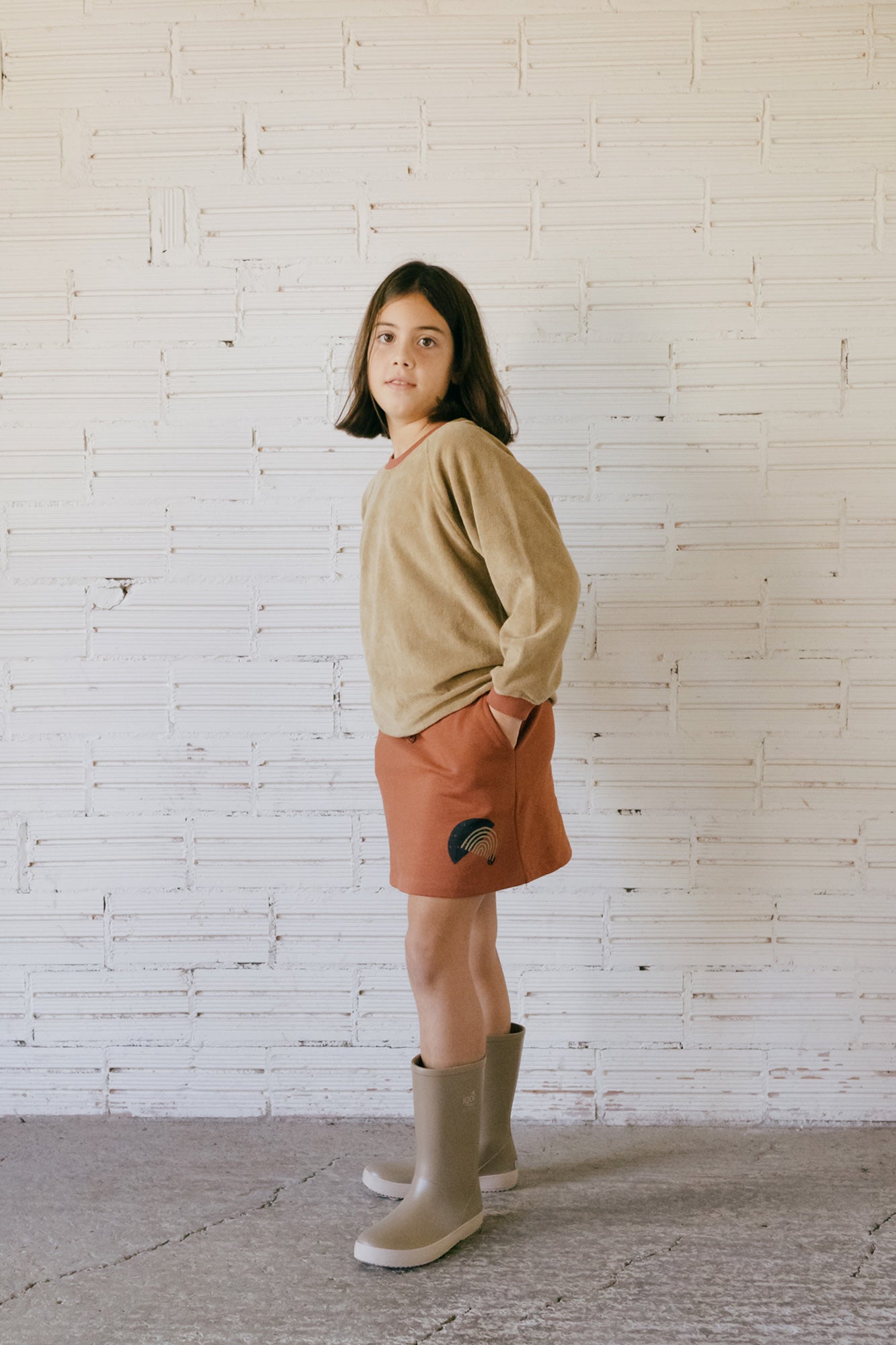 Gaya is a short flared skirt made of fleece organic cotton. It has an elastic waistband and a lacing to adjust it according to your needs. A very comfortable and cute garment that can be combined with the Galatea leggings or a pair of tights on colder days. A Mars red Origin basic, from the AURA collection, conveys strength and light and gives a special and exclusive touch to the garment. All our garments are made free of toxins and are hypoallergenic for the soft and delicate skin of your little ones.