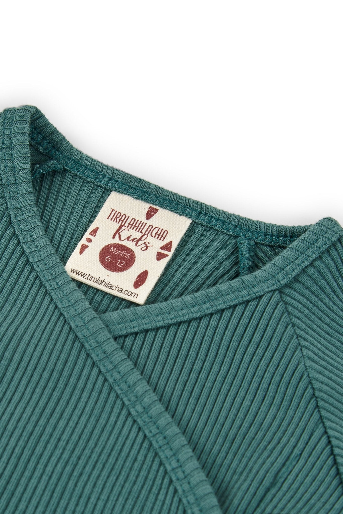 Griselle is a long-sleeved, ribbed baby bodysuit. It has nickel-free clasps at the neckline and bottom so that you can easily dress your baby. It is a comfortable and warm garment, very soft and pleasant to the touch. A basic Origin in sky blue, from the AURA collection that conveys strength and light and gives a special and exclusive touch to the garment. All our garments are made free of toxins and are hypoallergenic for your little one’s soft and delicate skin.