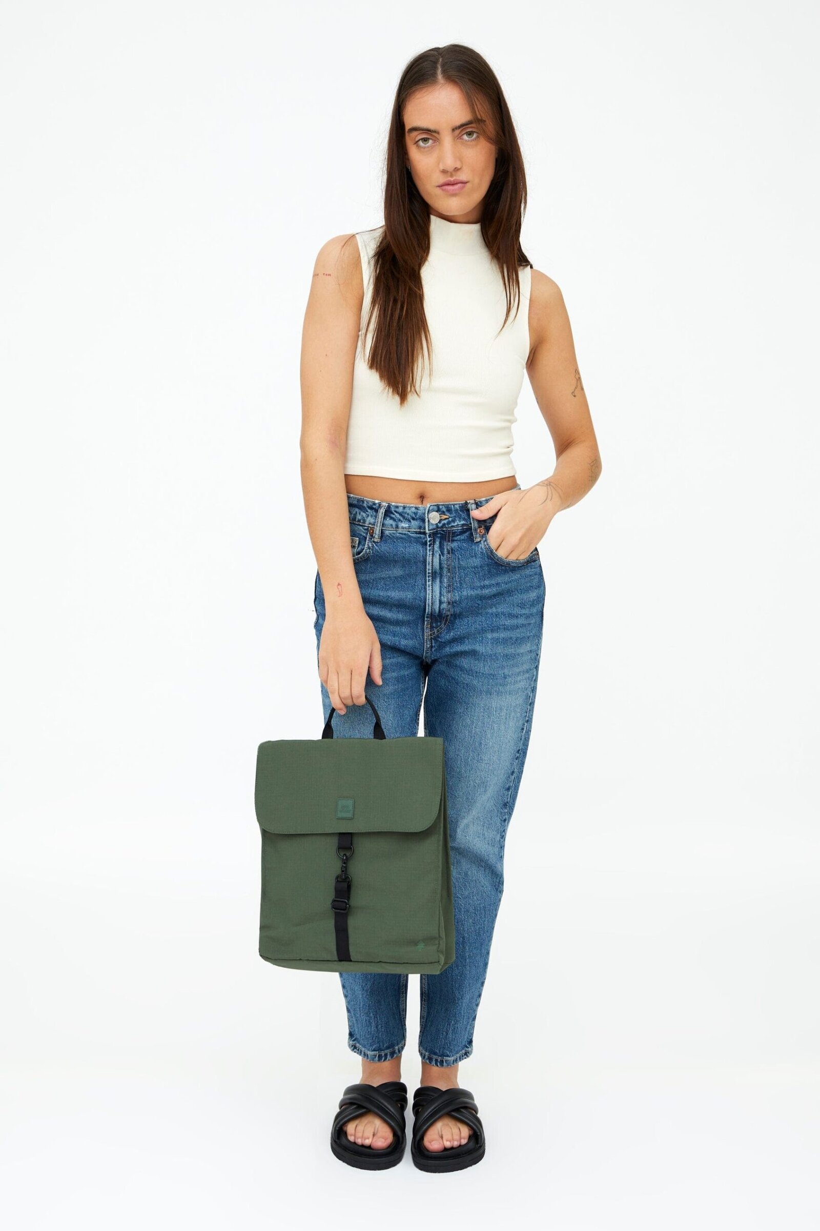 Mini version of our classic Handy model, but equally functional. Its slim profile comfortably fits a laptop up to 13.6″ and leaves extra space for other items. Its size makes it perfect as an everyday backpack.