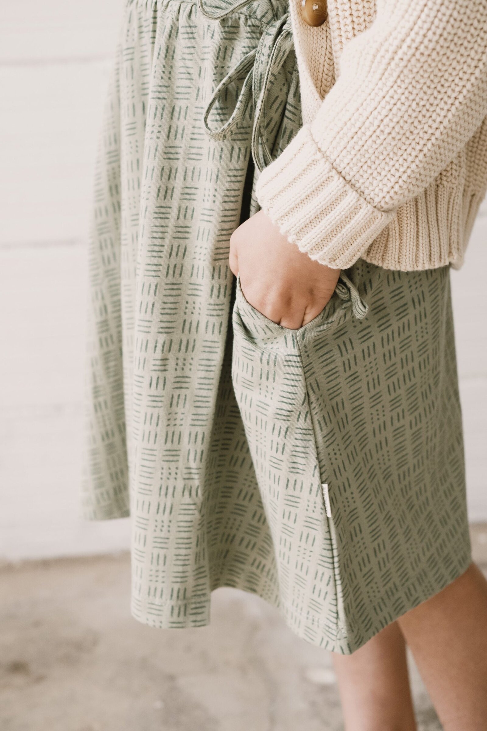 Hannia is a crossover dress with an empire cut and dropped sleeves. It’s loose-fitting and cool, complete with side pockets. Crafted from high-quality organic cotton knit and printed with eco-friendly dyes. The wicker print from our DREAM collection draws inspiration from the intricate weaving and bonds we create with our artisan partners, who meticulously craft and cherish every detail of your garments. A network of opportunities!
