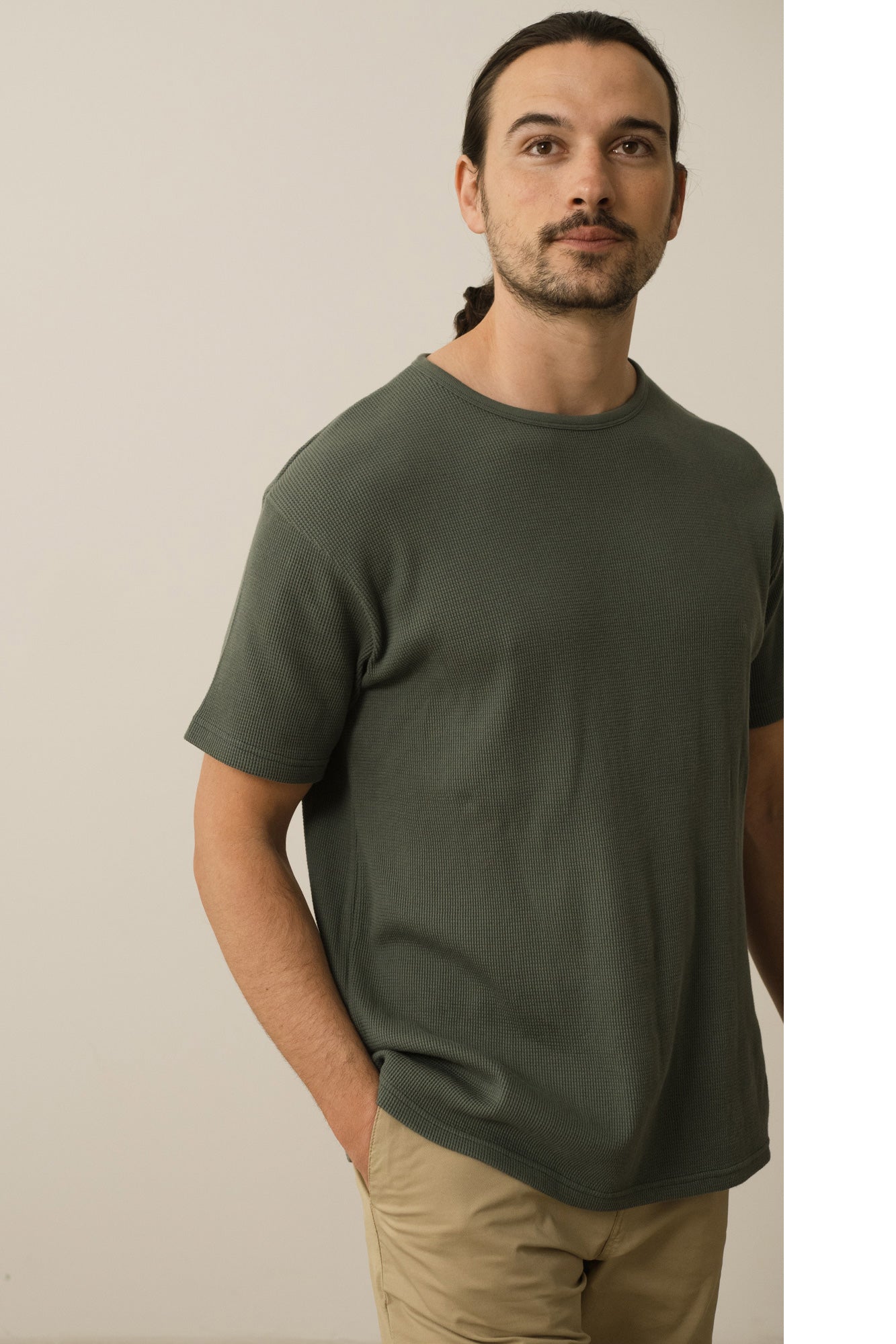 Harmony is a timeless must-have in your sustainable wardrobe. This waffle-textured t-shirt adds a special touch to any urban or beach outfit. Crafted from premium organic cotton knit and printed with eco-friendly dyes, it’s a versatile piece. Complete your look by pairing it with our khaki or black Hans or Herman trousers. The aquamarine blue colour from the Origin collection exudes a sense of calm and serenity. It brings forth brightness and freshness.