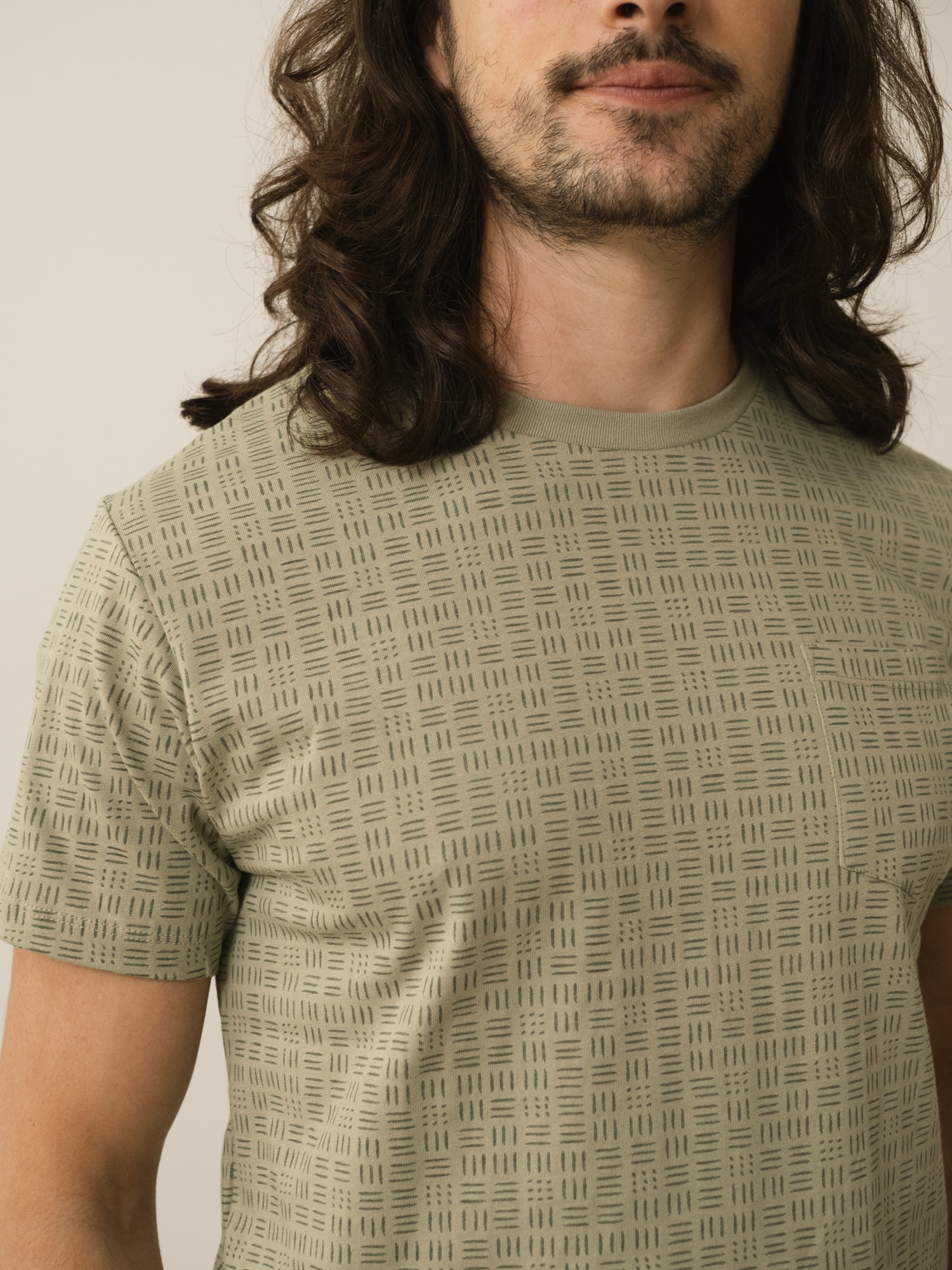 The Harriet tee with a chest pocket is just what you need to elevate your look with a special and unique touch. Crafted from premium organic cotton knit and printed with eco-friendly dyes. The wicker print from our DREAM collection draws inspiration from the intricate weaving and bonds we create with our artisan partners, who meticulously craft and cherish every detail of your garments. A tapestry of cultures!