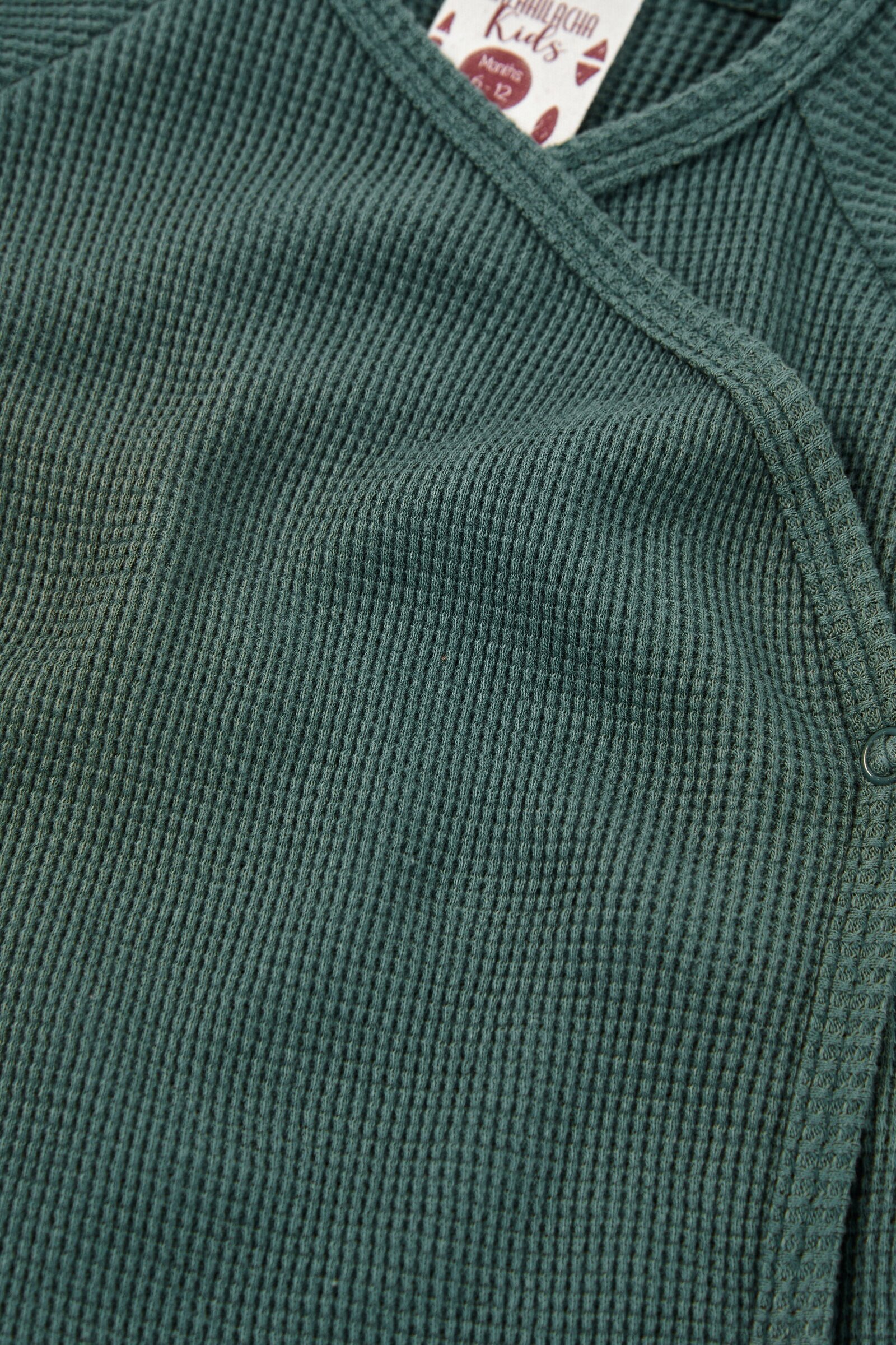 Haruka is the perfect bodysuit for dressing your baby effortlessly while respecting their free movement. With a V-neck, short raglan sleeves, and nickel-free snaps. Crafted from premium organic cotton knit and printed with eco-friendly dyes. A comfortable, soft, and hypoallergenic garment to care for and protect your baby’s skin. The aquamarine blue from the Origin collection exudes a sense of calm and serenity. It brings forth brightness and freshness.