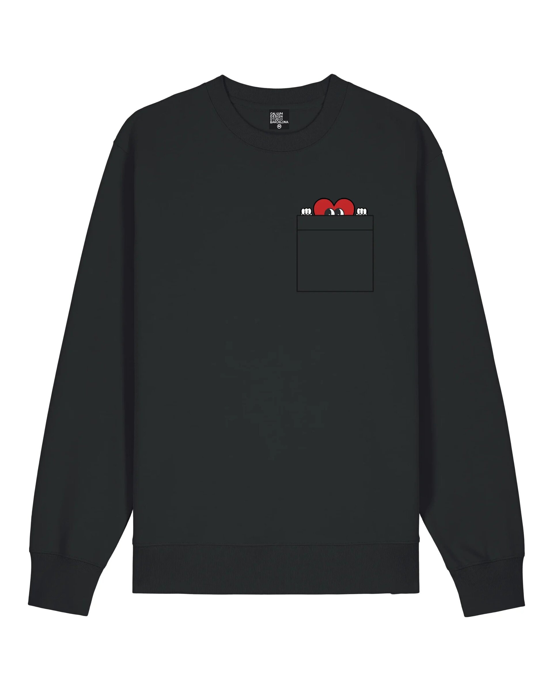 A playful animated heart peeks out from the chest pocket of this comfortable, medium-fit sweatshirt. Crafted from 350gsm organic cotton in a natural raw colour, this unisex design features a classic round neck. Silkscreened and sewn with care in our Barcelona studio.