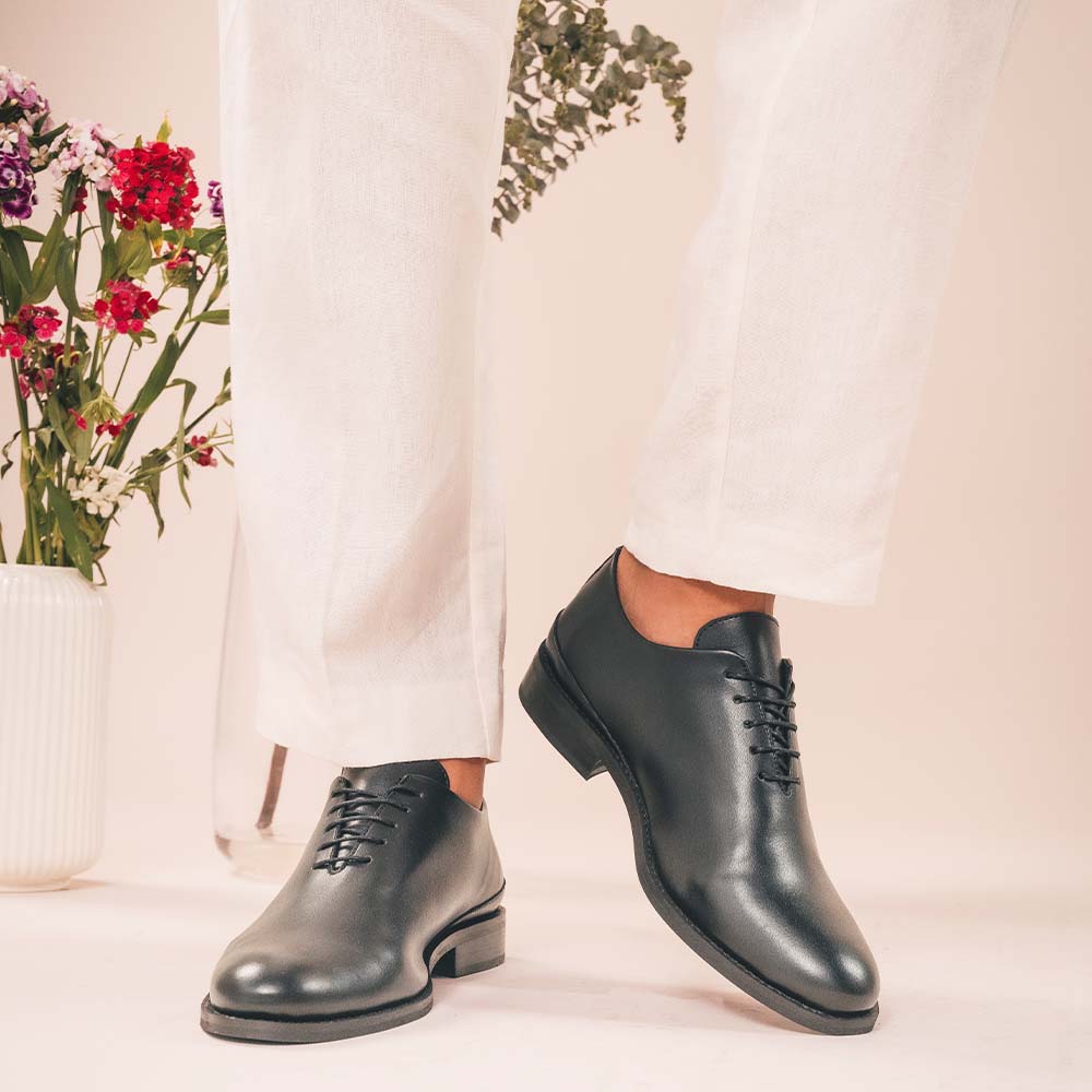 Introducing our sleek and sophisticated men’s oxford shoe, crafted with precision and sustainability in mind. The wholecut design of our shoe offers a seamless and refined look, perfect for any occasion. Made from high-quality apple leather, our vegan shoes not only exude style but also uphold ethical standards. With meticulous attention to detail and a commitment to cruelty-free fashion, our black men’s oxford shoe is the epitome of elegance and conscience. Step into the future of footwear with our vegan shoes, where style meets sustainability.
