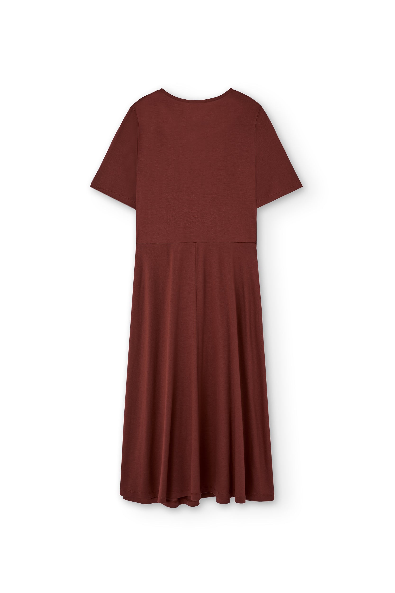 Our Helen wrap dress with a chic V-neckline is sophisticated and feminine. Its high waist cut is designed to flatter and accentuate your silhouette effortlessly. With its perfect midi length and adjustable tie, it’s the go-to dress for any occasion. Crafted from high-quality organic cotton knit and printed with eco-friendly dyes, it’s irresistibly soft and gentle on the skin.