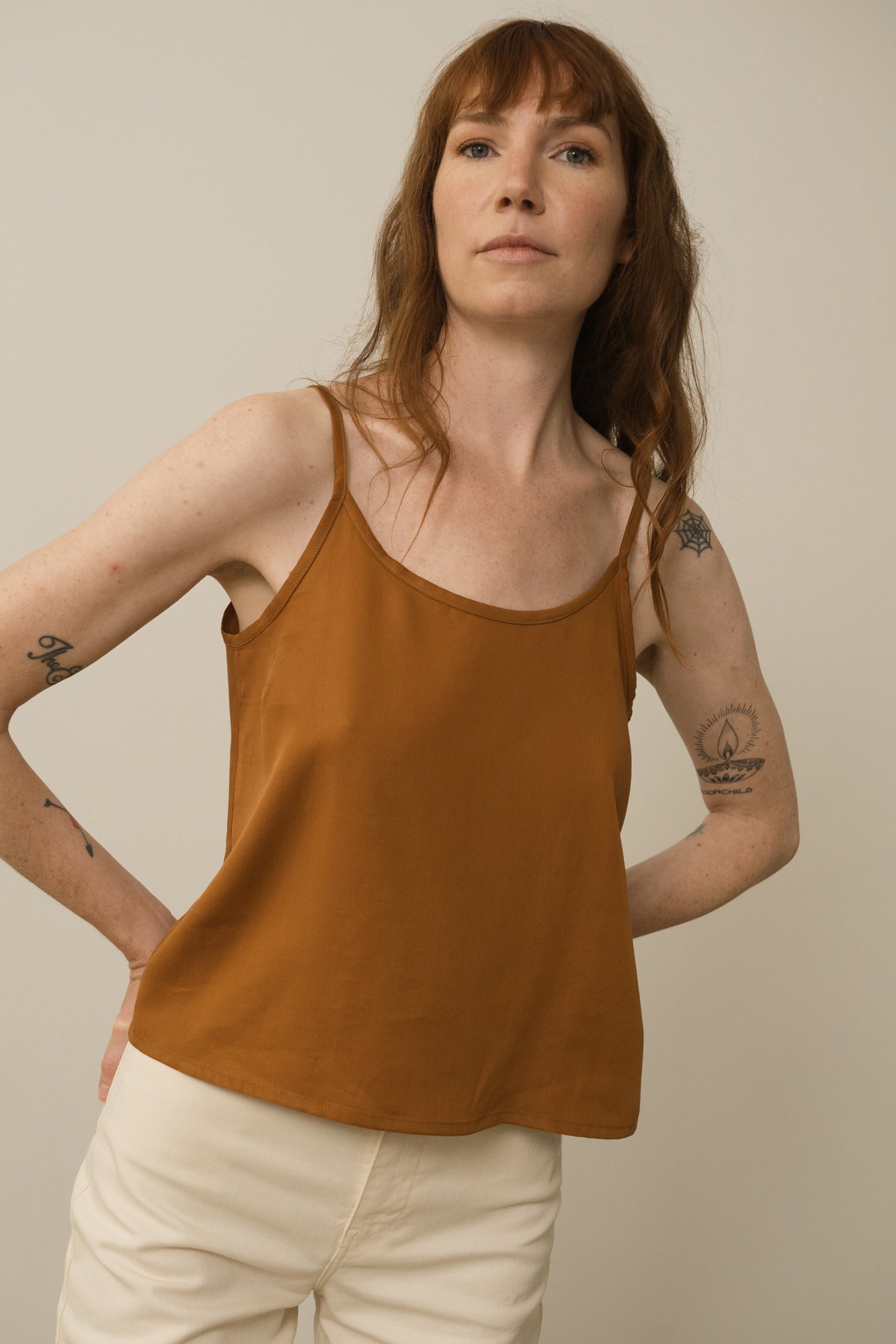 The Heloise top is a timeless basic you can combine with an infinite number of garments. Its soft and silky touch gives it elegance and sophistication. Made with TENCEL™ Lyocell fabric. A unique and exclusive limited edition garment made in our own factory, only a few units of each color are available! Its terracotta color of the Origin Basics collection evokes the warmth of sunsets.