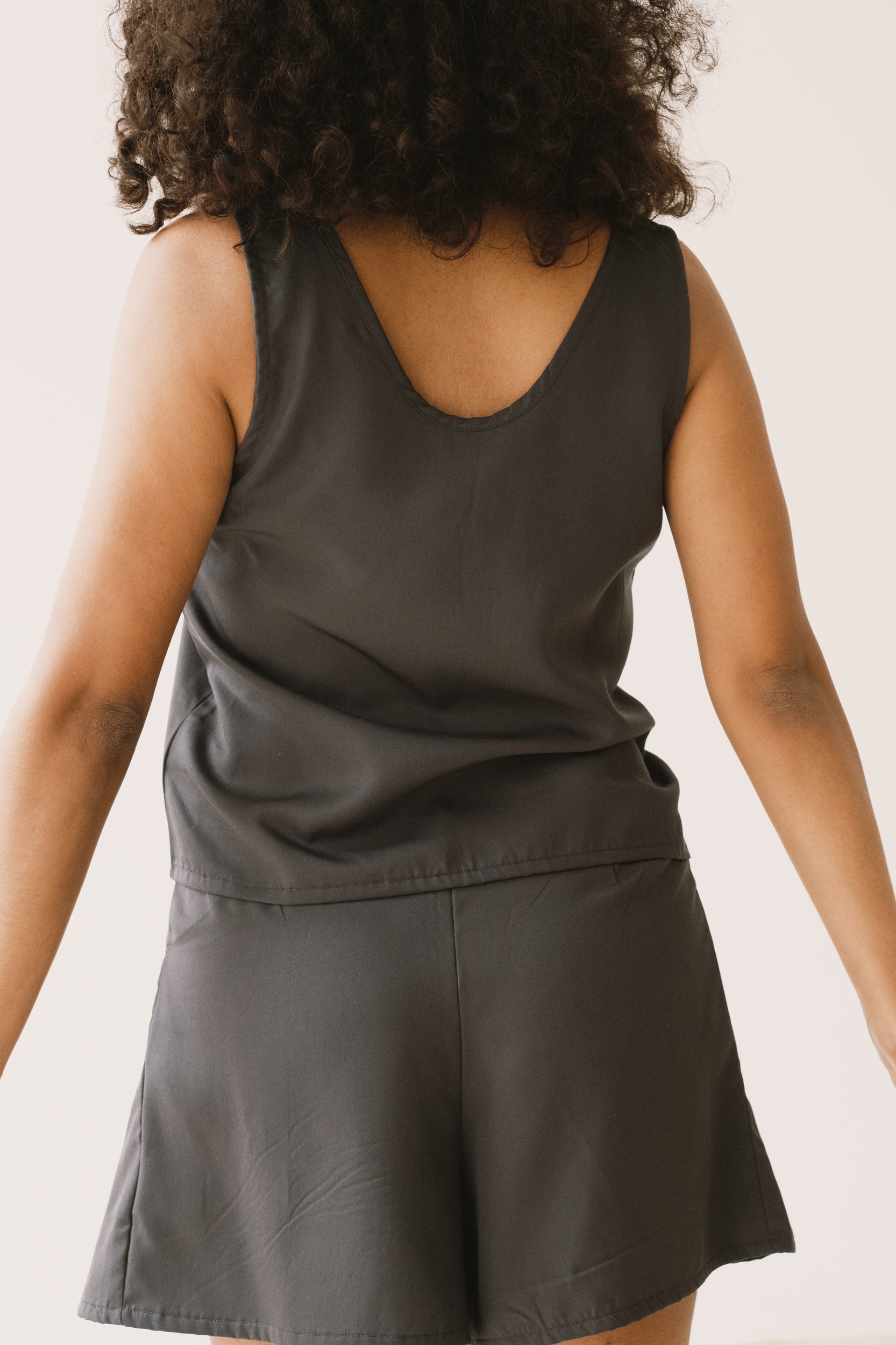 The trendy crop top and its endless styling possibilities. A summer essential. Fresh, light, and comfortable. Slightly loose straight fit with a V-neckline in the front and back. You can pair it with the Halia skirt or the Hannia shorts for a complete look. Crafted from premium TENCEL™ Lenzing twill and dyed with eco-friendly dyes. The deep black colour from our Origin Basics collection exudes strength, elegance, and sophistication.