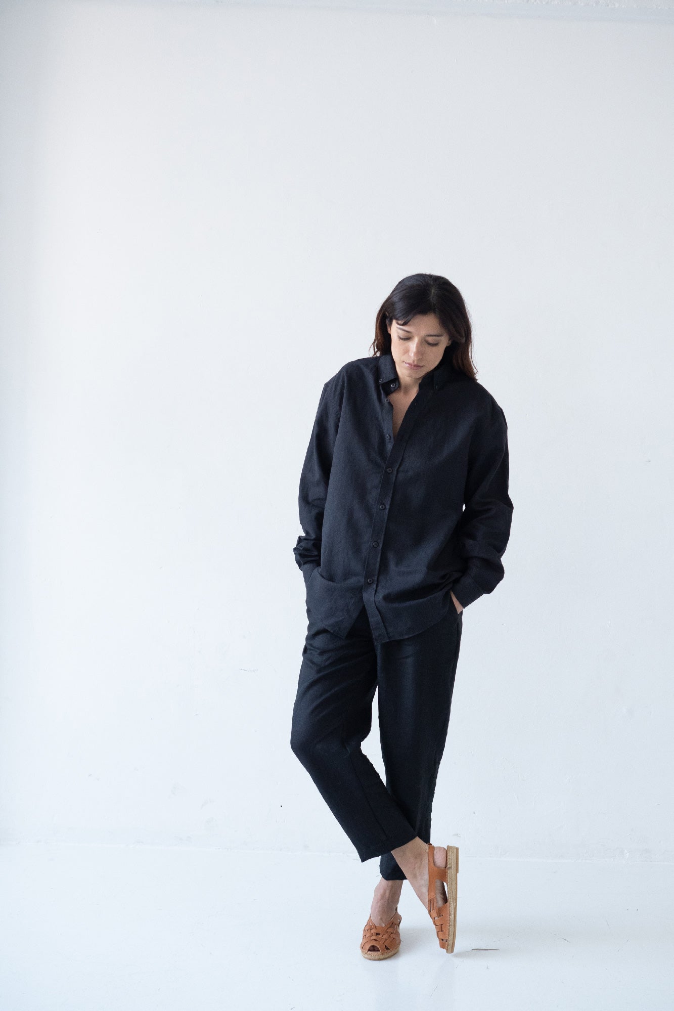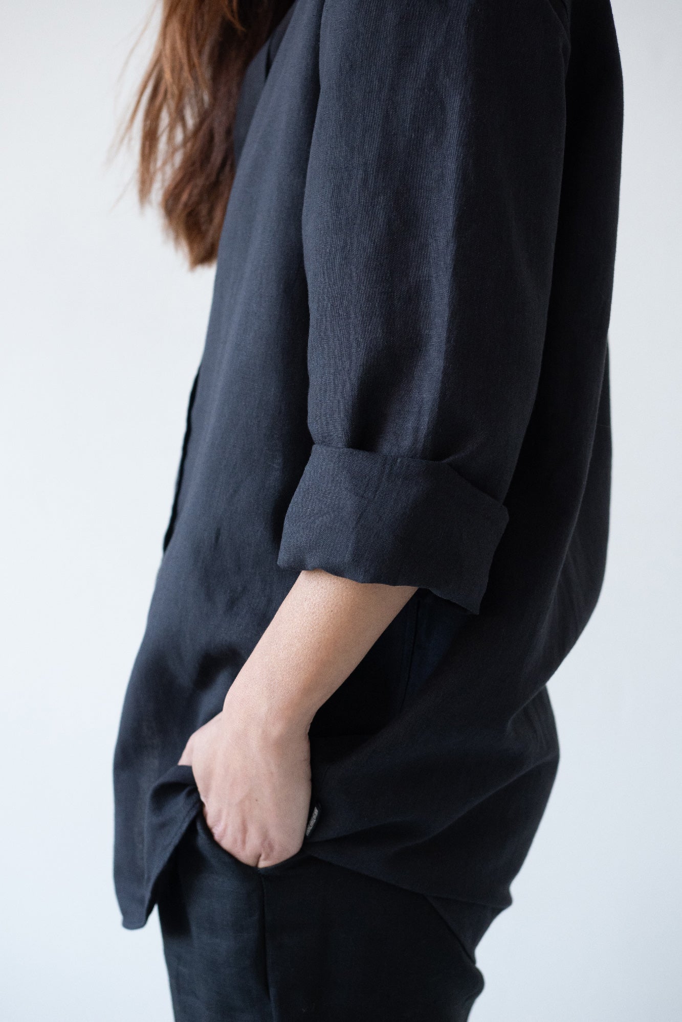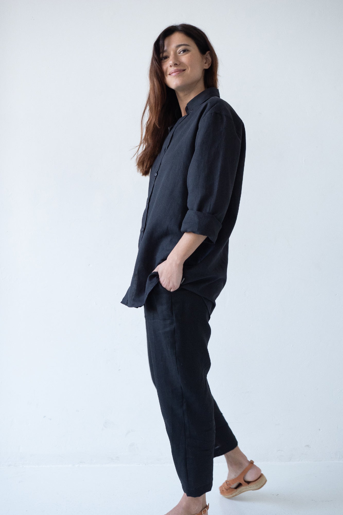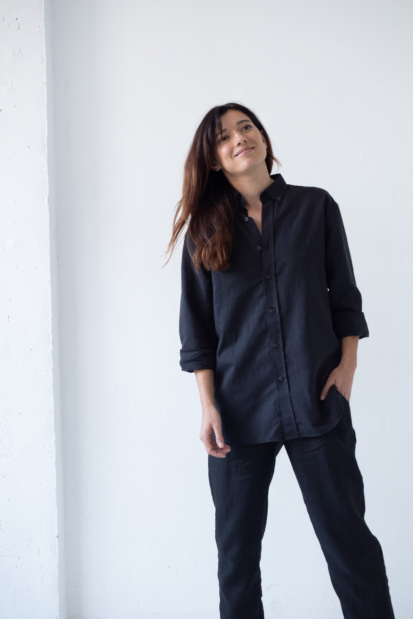 Hugo is a timeless and unisex shirt, it is comfortable and elegant as well as versatile. For a more oversized and casual look, we recommend choosing a couple of sizes larger, if you want a more comfortable look, choose your usual size. A light, soft-touch garment made of high-quality linen and organic cotton. It is a comfortable garment and perfect for summer due to its fresh and breathable fabric. It has tone-on-tone dyed biodegradable natural corozo buttons. An essential basic for your sustainable wardrobe! The deep black color of the Origen Basics collection conveys strength, elegance and sophistication.
