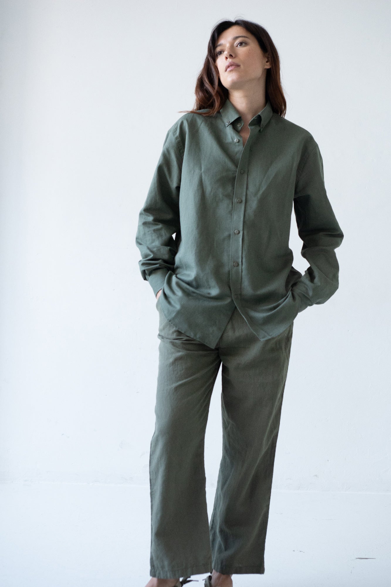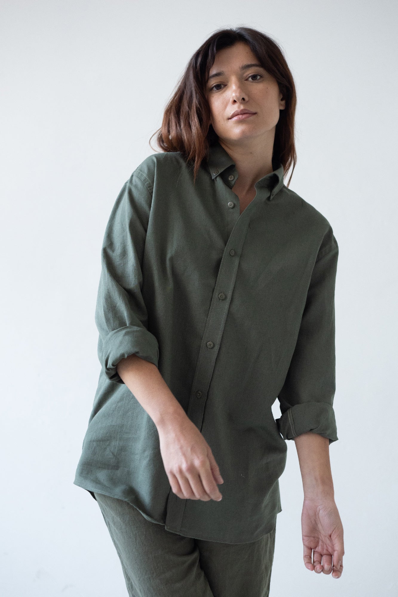 Hugo is a timeless and unisex shirt, it is comfortable and elegant as well as versatile. For a more oversized and casual look, we recommend choosing a couple of sizes larger, if you want a more comfortable look, choose your usual size. A light, soft-touch garment made of high-quality linen and organic cotton. It is a comfortable garment and perfect for summer due to its fresh and breathable fabric. It has tone-on-tone dyed biodegradable natural corozo buttons. An essential basic for your sustainable wardrobe! The green color of the Origin Basics collection conveys serenity and reminds us of the exuberance and lushness of a forest.