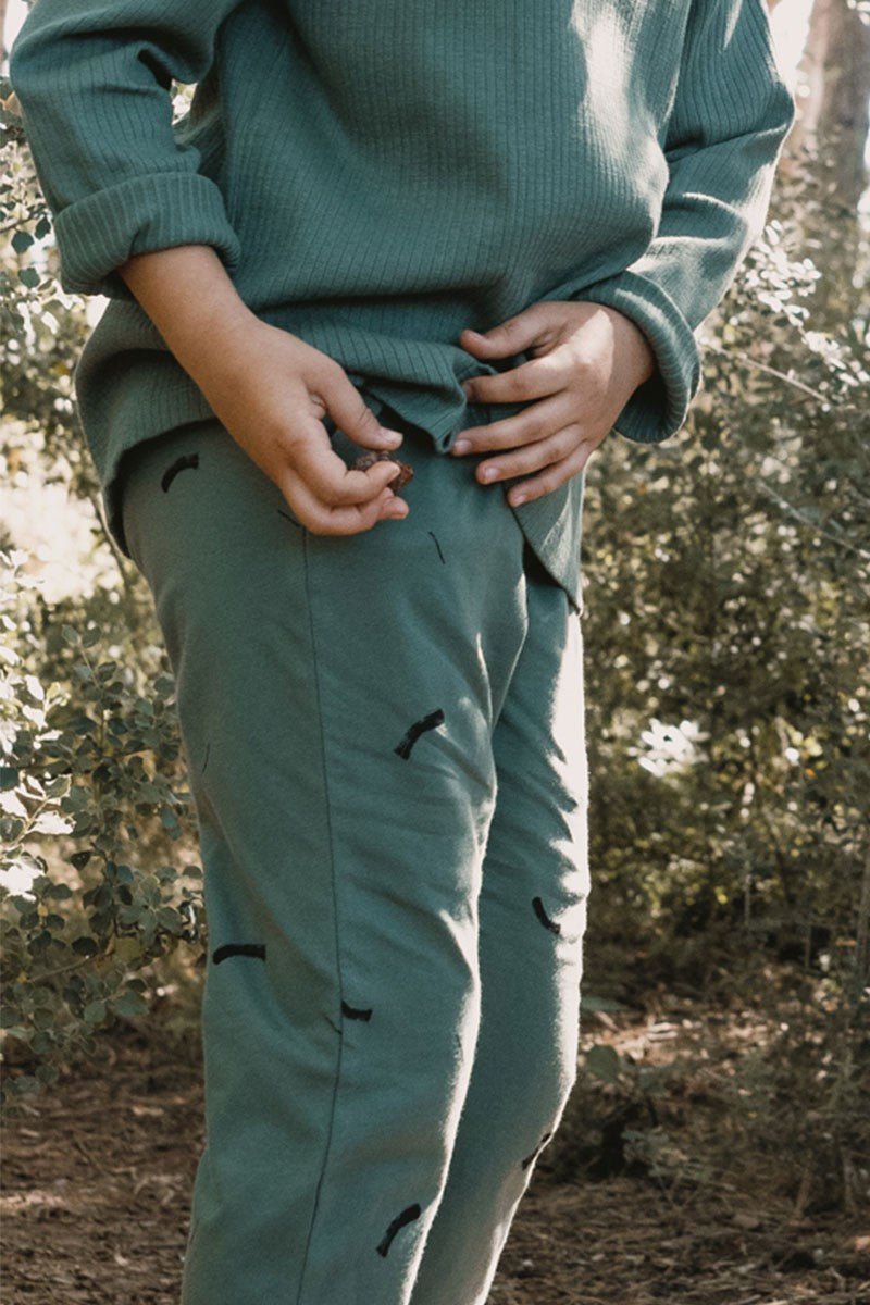 Jabari is a pair of long knitted pants, with pockets on the sides and elastic at the waist for a better fit. It is a loose-fitting, very comfortable and versatile garment. You can combine this pant with the Jun T-shirt or the Jay jumper to get the complete tracksuit. The strokes print in green, from the Earth collection, inspired by Mother Earth, gives the garment that unique and special touch. Combine it with the Jabari trousers for a perfect look. All our garments are made free of toxins and are hypoallergenic for your little one’s soft and delicate skin.