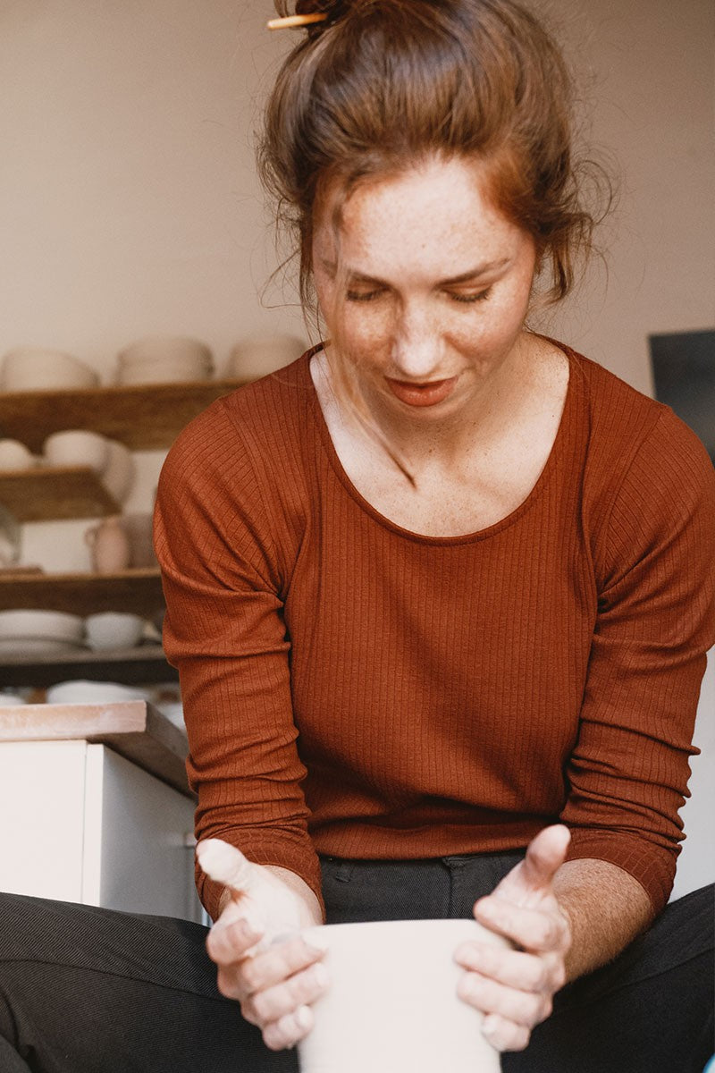 Jade is a long-sleeved ribbed T-shirt with a basic cut. A versatile garment that you can wear with an infinite number of combinations. We recommend you to combine it with the Juliet pant, fits perfectly!. An essential basic for your sustainable wardrobe ! The earth-inspired agate garnet colour conveys vitality and confidence. This garment has a very soft and pleasant touch on the skin. In addition, it is made free of chemicals and is hypoallergenic.