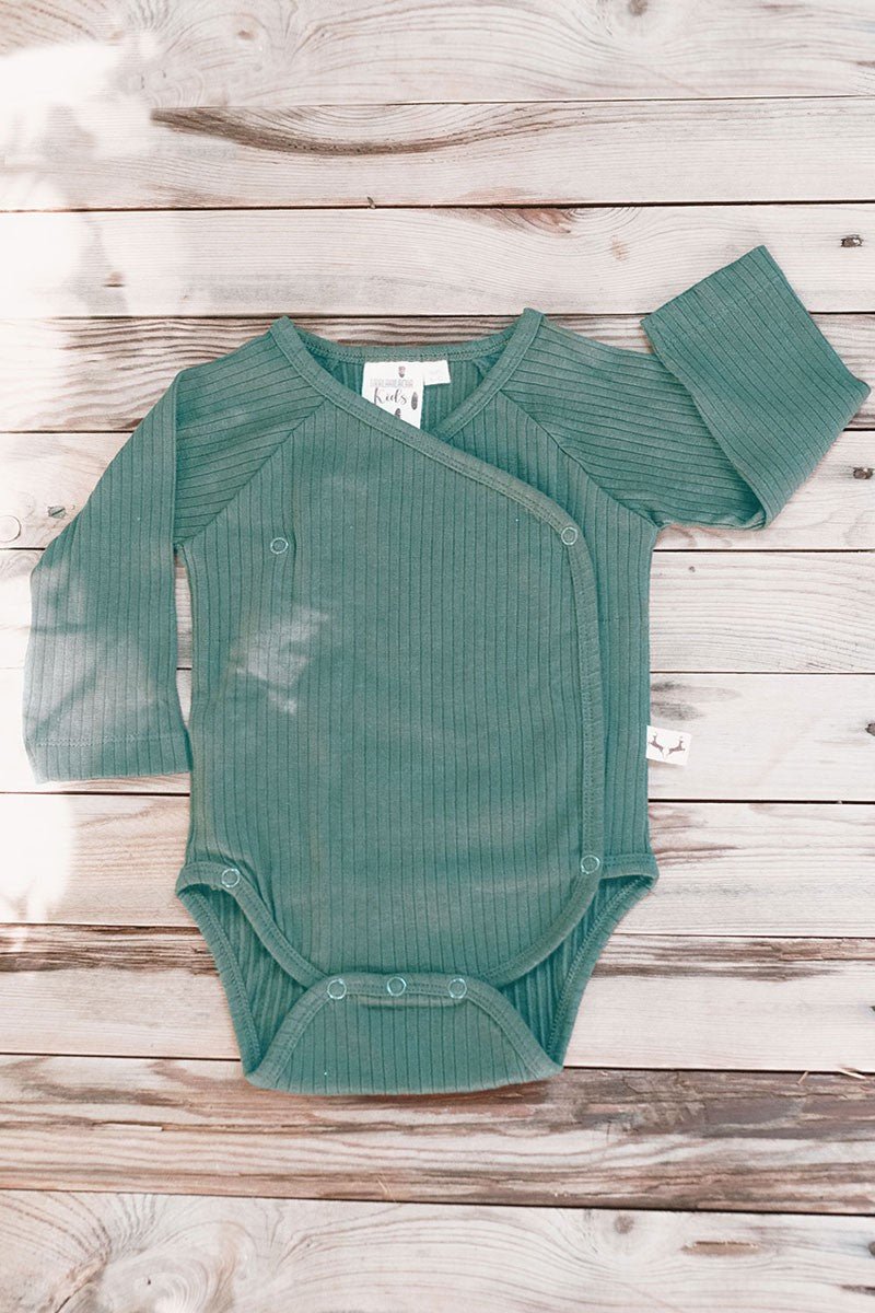 Jael is a baby bodysuit with long sleeves. It has nickel-free clasps. It is a cute and comfortable ribbed garment perfect to combine with the Joali pant for a complete look. The emerald green colour inspired by earthy colours gives this garment an original and unique touch. The ribbed fabric is very soft and pleasant to the skin. All our garments are made free of toxins and are hypoallergenic for your little one’s soft and delicate skin.