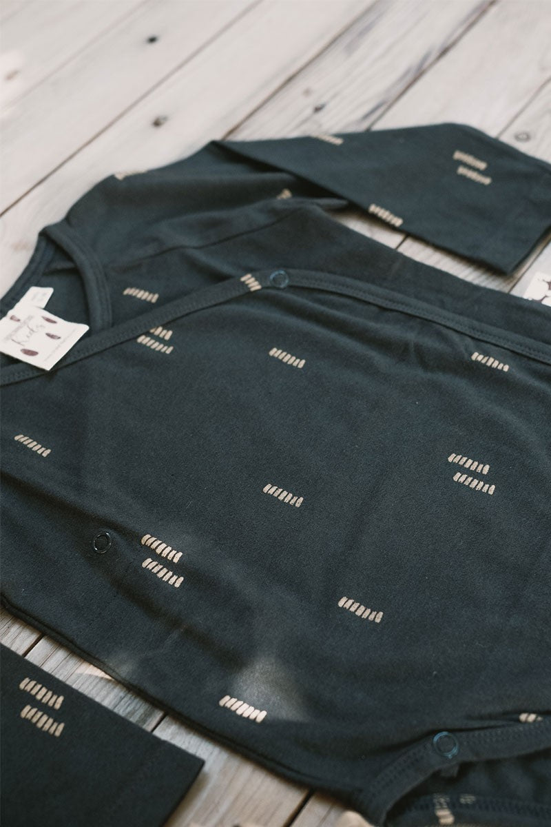 Jael is a baby bodysuit with long sleeves. It has nickel-free clasps. A cut and comfortable knit garment perfect to combine with the the Joali pants for a complete look. The mineral print in black, from the Earth collection, inspired by mother earth, gives the garment that unique and special touch. All our garments are made free of toxins and are hypoallergenic for your little one’s soft and delicate skin.