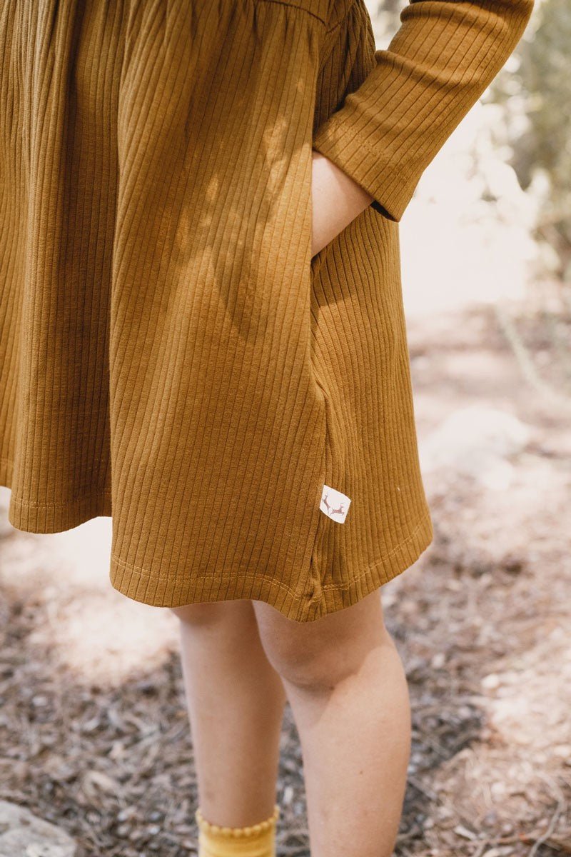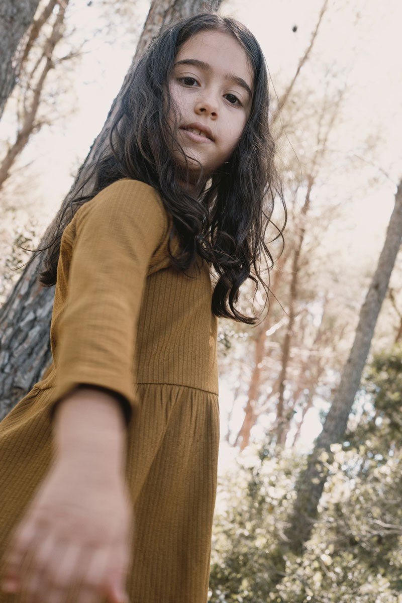 Jess is a ribbed knit dress with long raglan sleeves. It is an oversized model fitted at the waist and with side pockets. The agate garnet inspired by earthy colours gives this garment an original and unique style. The ribbed fabric is very soft and pleasant to the touch. All our garments are made free of toxins and are hypoallergenic for your little one’s soft and delicate skin.