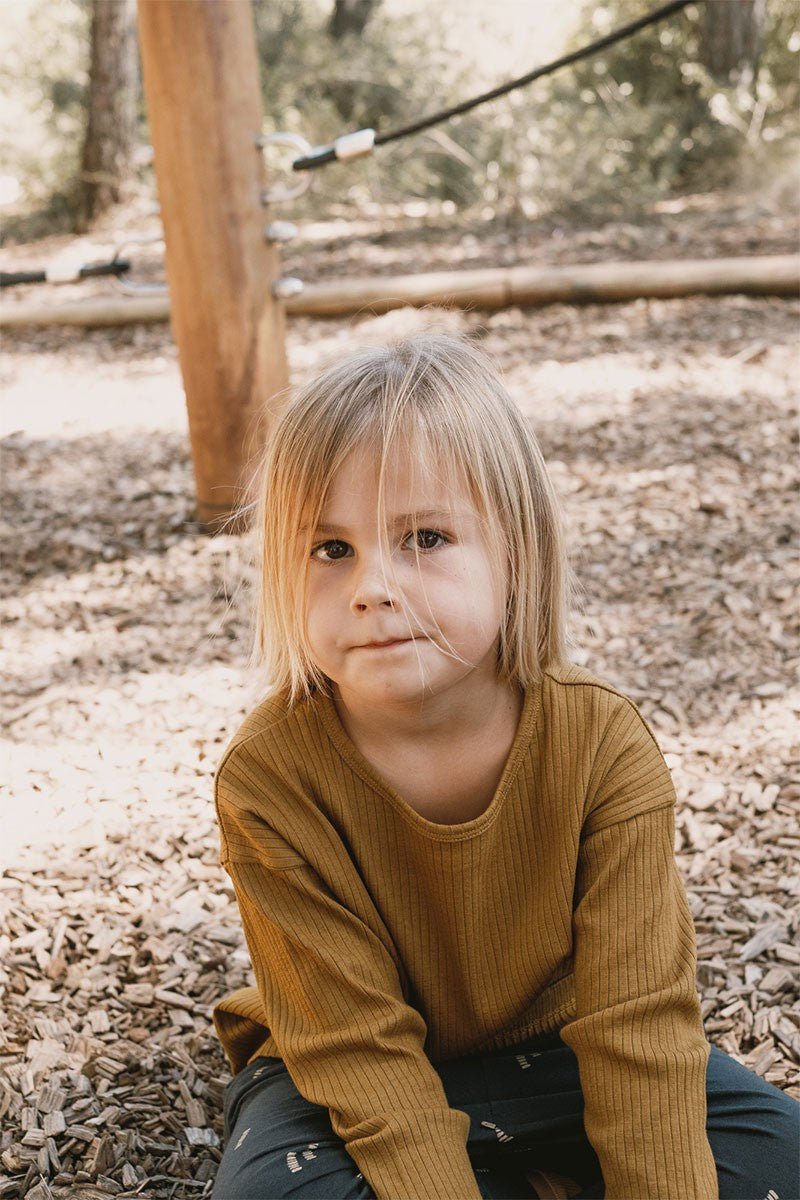 Jun is a basic oversized ribbed knitted T-shirt with long sleeves. The loose-fitting design allows your little one to wear it for a longer period of time.The jade green/mustard colour, inspired by earthy colours, gives this garment an original and unique touch. The ribbed fabric is very soft and pleasant to the touch. You can combine it with the Jabari pant to get the complete look. All our garments are made free of toxins and are hypoallergenic for your little one’s soft and delicate skin.