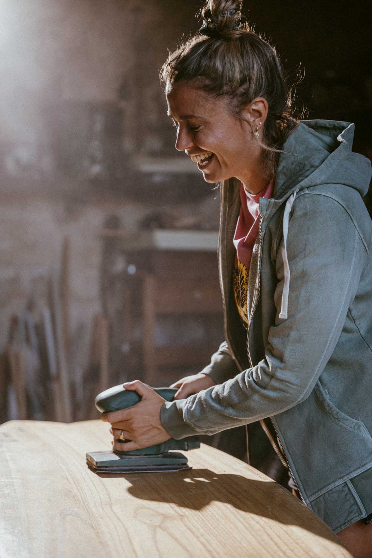 • Capucha ligera y agradable forrada de punto en el interior.
