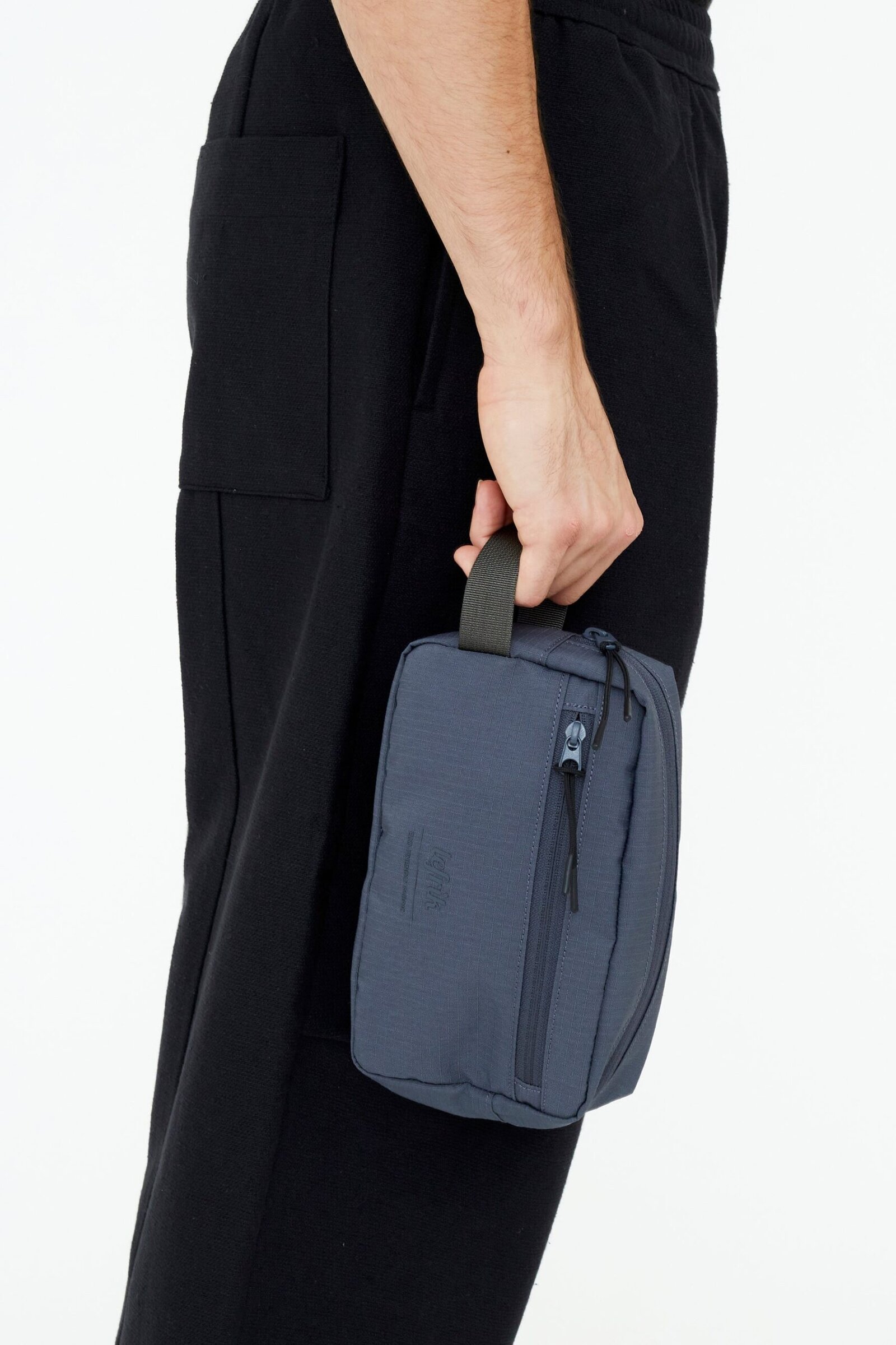 A medium sized toiletry bag to keep all your products tidy. It features a large main compartment with mesh pockets on the sides to keep smaller products organised, a front zipped pocket, and a webbing handle in contrast colour to ease carrying.