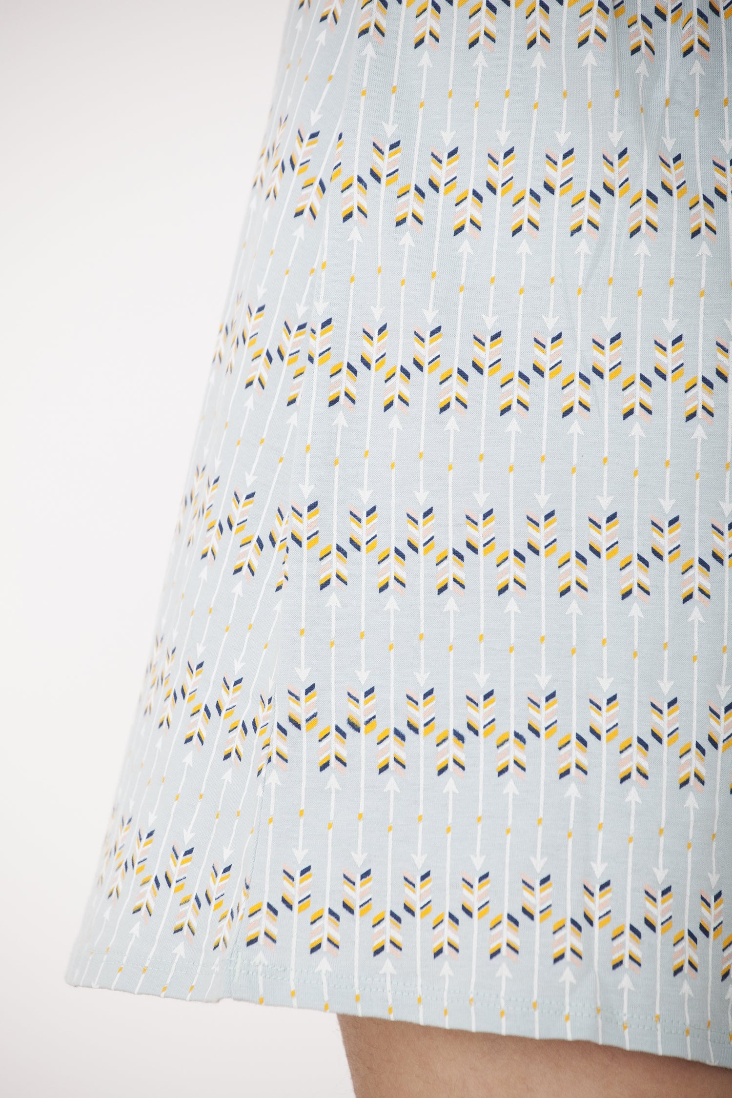 Light blue skirt with arrow print. Elastic on the waist for a better fit. 100% Organic Fairtrade Certified Cotton. Designed with ♥ in Barcelona. What’s my size?