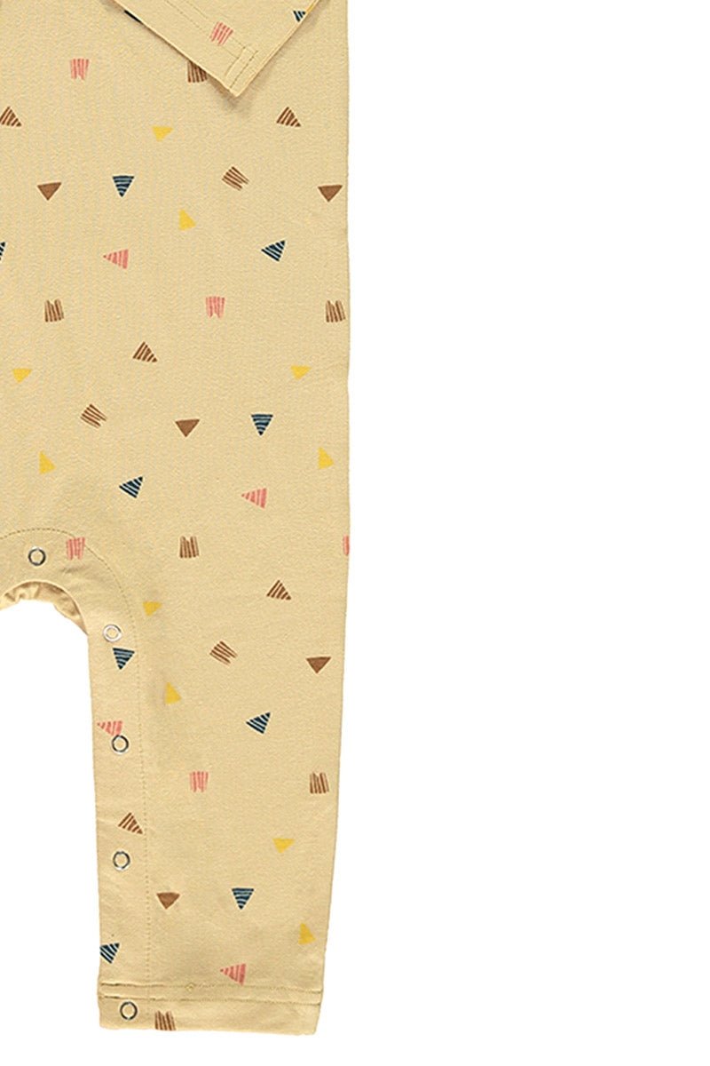 Mono de manga larga ranglán estampado triángulos inspirada en Circus. Es una prenda cómoda y muy suave al tacto. Lleva una tapeta con botones forrados y corchetes (libres de níquel) en la entrepierna para vestir fácilmente al bebé.