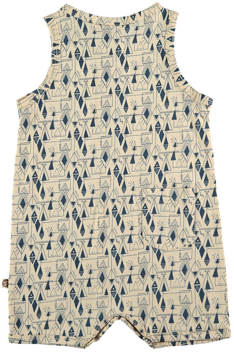 Mono de tirantes estampado geométrico. Es una prenda cómoda y muy suave al tacto. Lleva una tapeta con botones forrados y corchetes (libres de níquel) en la entre pierna para vestir fácilmente al bebé. Todas nuestras prendas están confeccionadas libres de tóxicos y son hipoalergénicas para la suave y delicada piel de tu pequeñx.