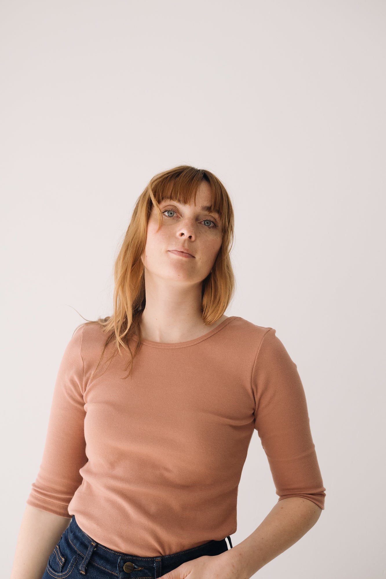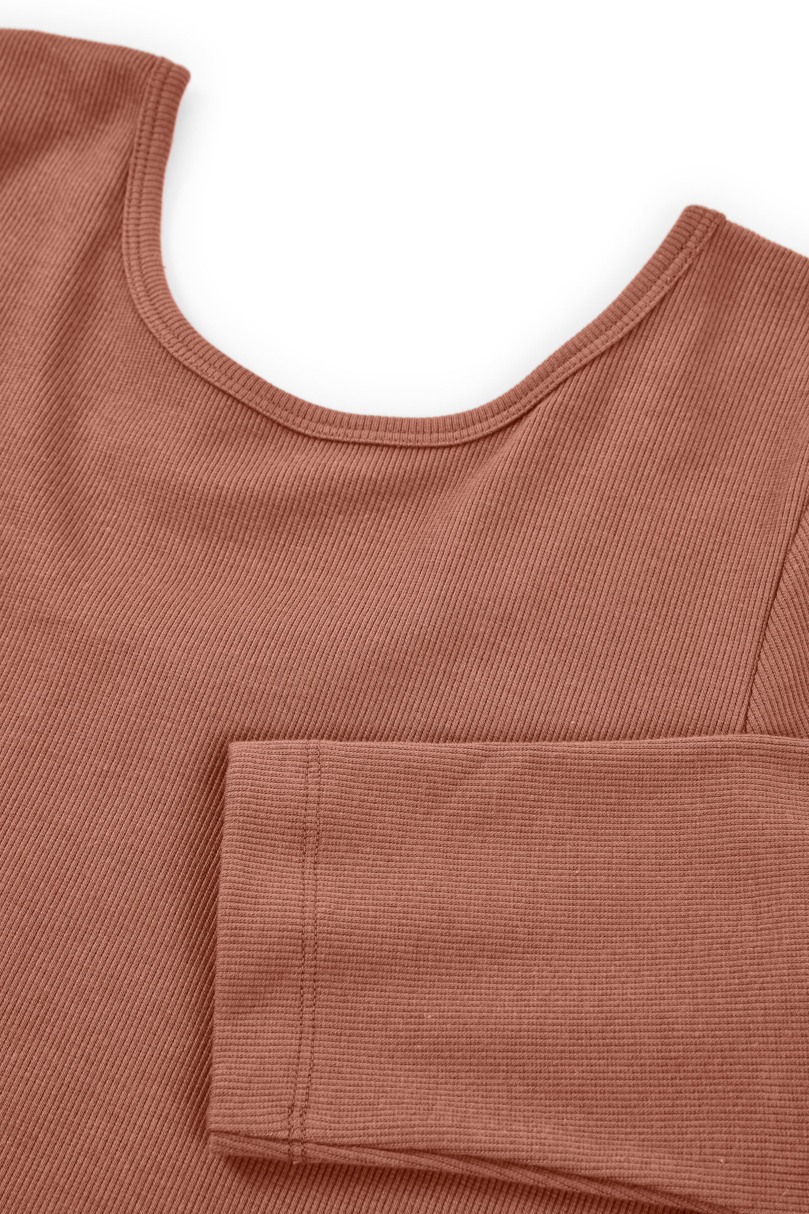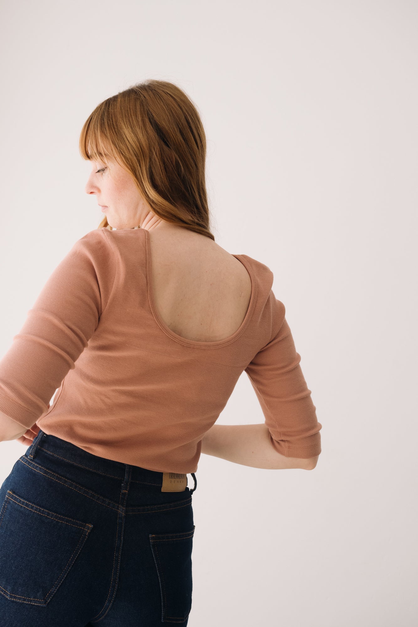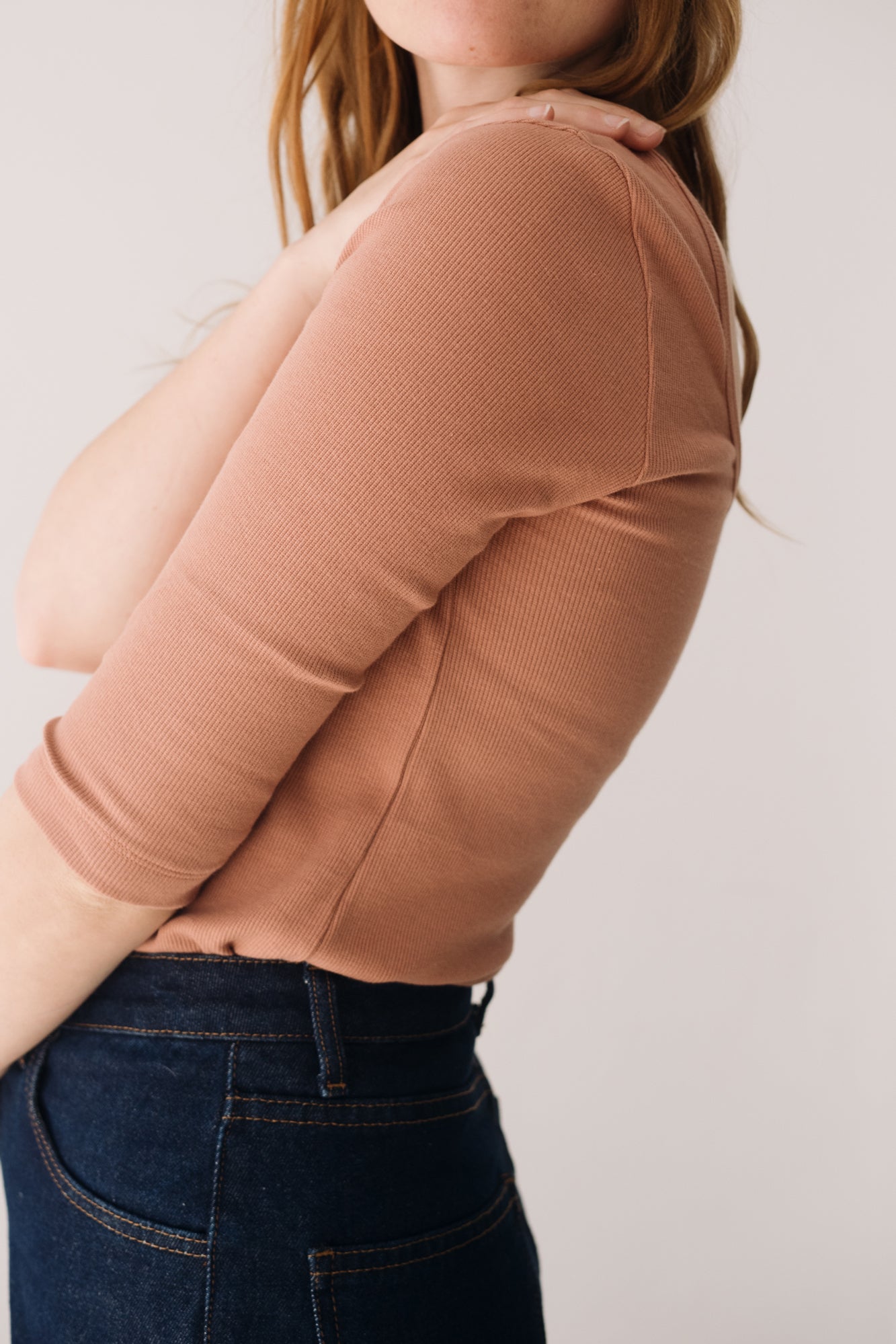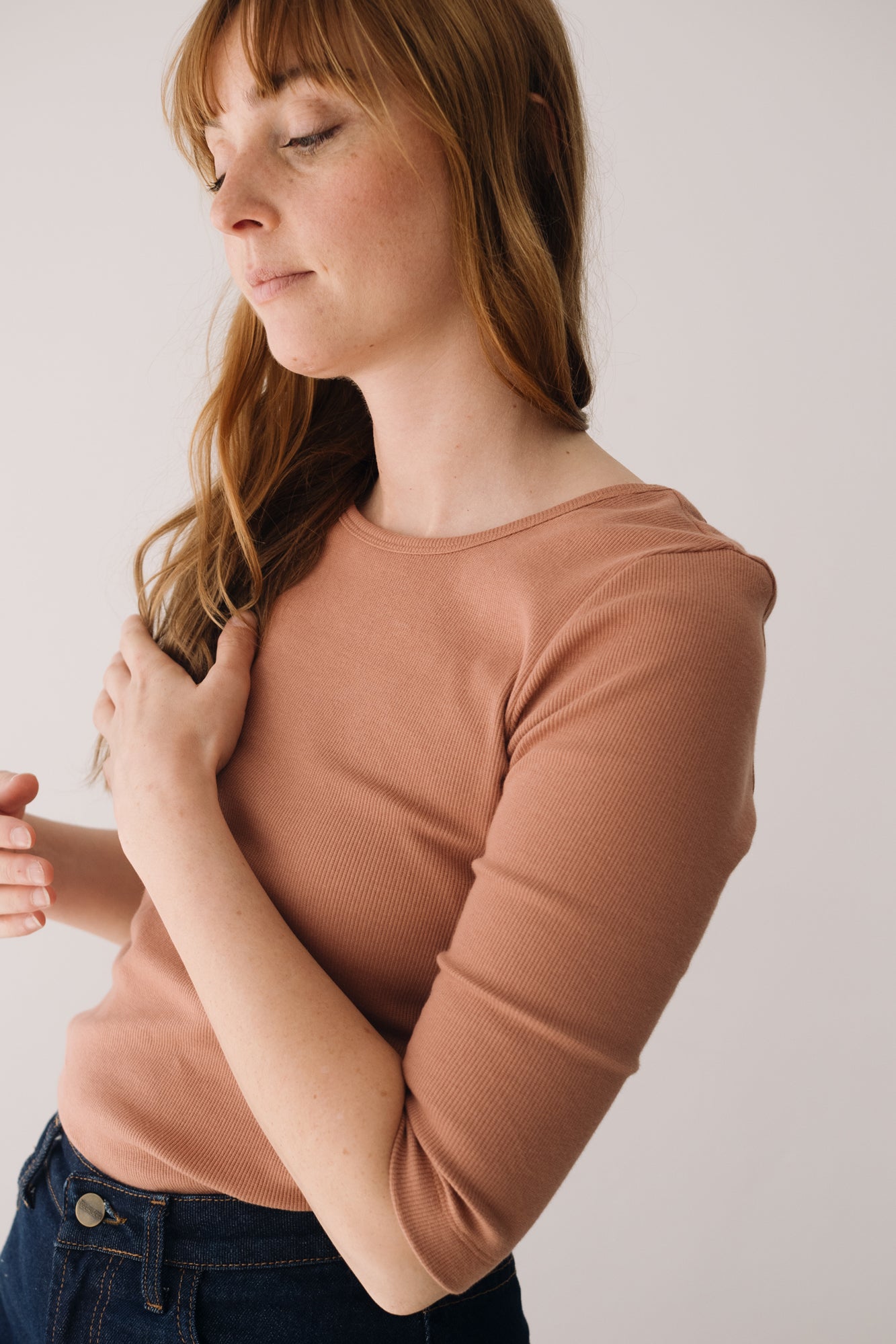 This Top with three-quarter sleeves and a boat neckline is a sustainable wardrobe essential. Its versatile and feminine design lets you style the neckline lower at the front or back, adapting to your look with ease. Made from GOTS-certified organic cotton rib fabric, this eco-friendly top has a soft, warm, and stretchy texture that flatters your shape without restricting movement. A timeless and comfortable piece to elevate any outfit. The dusty pink shade evokes sweetness, calm, and delicacy. This soft and timeless shade adds a romantic and serene touch to any look.