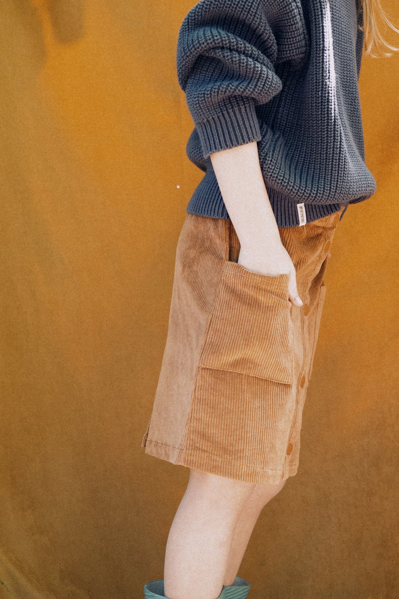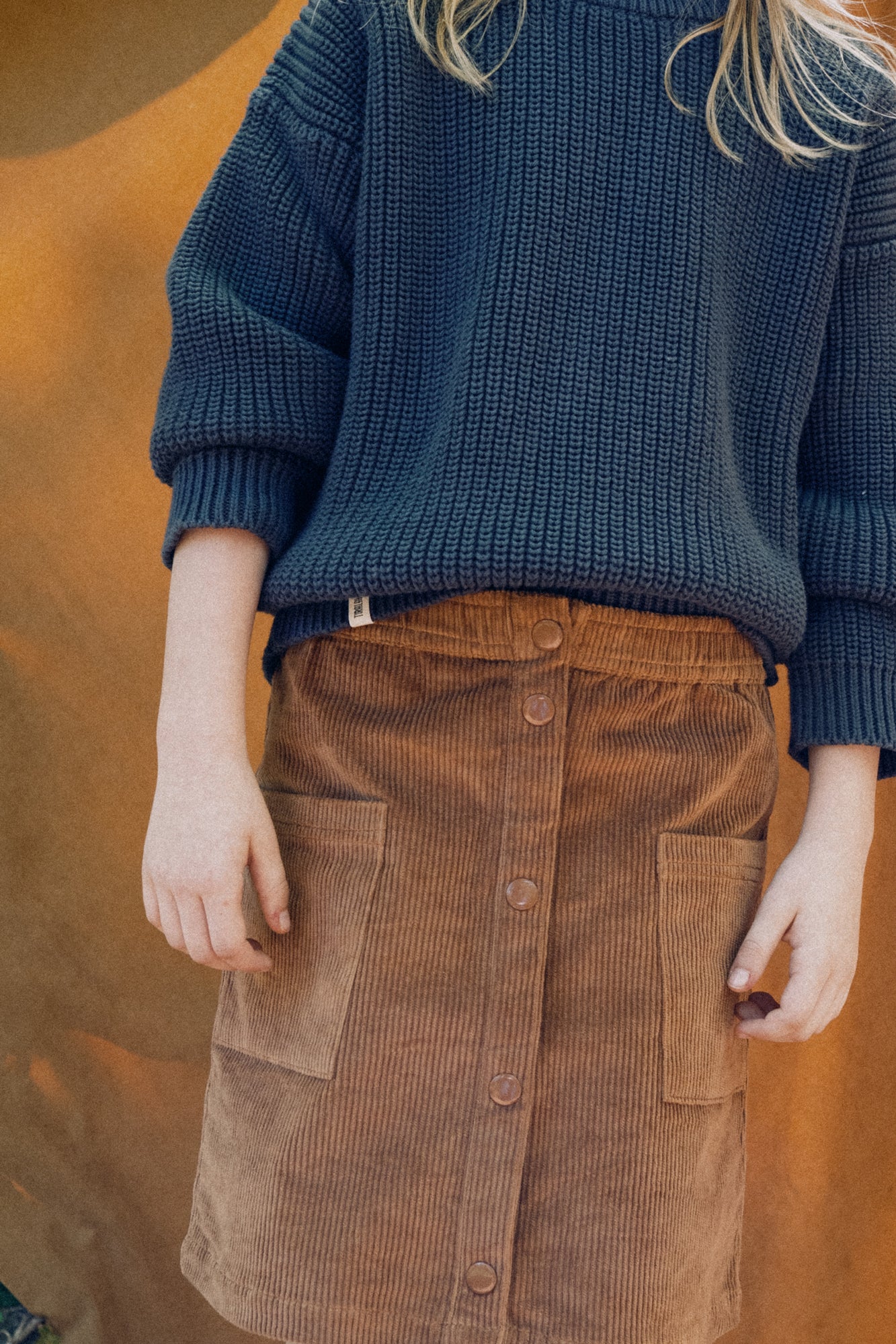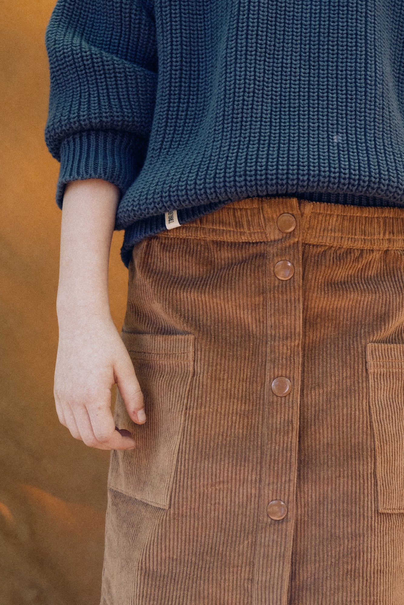 This corduroy skirt will be your little one’s best ally in winter. With a slightly flared cut, an elastic waistband for extra comfort, and nickel-free snap buttons that are easy to open and close—encouraging independence. Designed to last, it’s warm, soft, and resistant thanks to its GOTS-certified organic cotton corduroy fabric. All our garments are toxin-free and hypoallergenic, carefully crafted to protect and respect your little one’s delicate skin. This terracotta shade conveys warmth, strength, and an earthy connection. A timeless and versatile color that adds depth and natural elegance to any outfit.