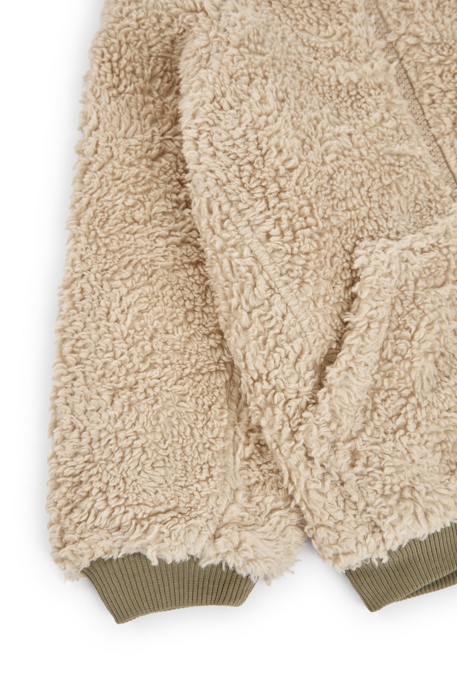 Our Sherpa Jacket made from 100% GOTS-certified organic cotton—completely free from synthetic or recycled fibers! Perfect for keeping little ones warm on the coldest days, it features a relaxed fit with raglan sleeves, a high collar, and soft ribbed cuffs and hem. Thick yet lightweight, this warm and cozy jacket is lined with soft jersey inside for extra comfort and ease of movement. All our garments are toxin-free and hypoallergenic, carefully crafted to protect and respect your little one’s delicate skin. This neutral ecru shade evokes calm, warmth, and balance. Versatile and luminous, it pairs effortlessly with any outfit.