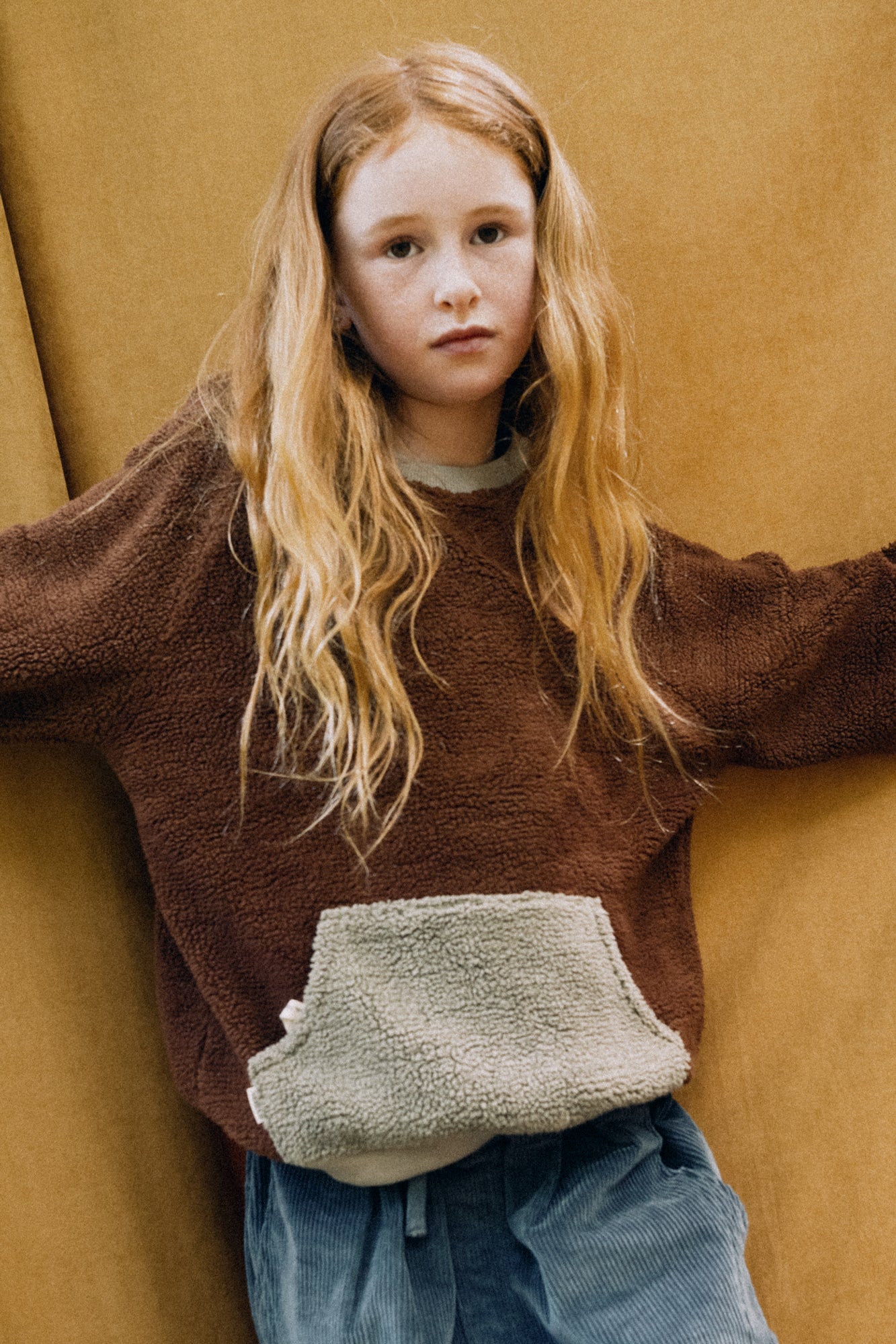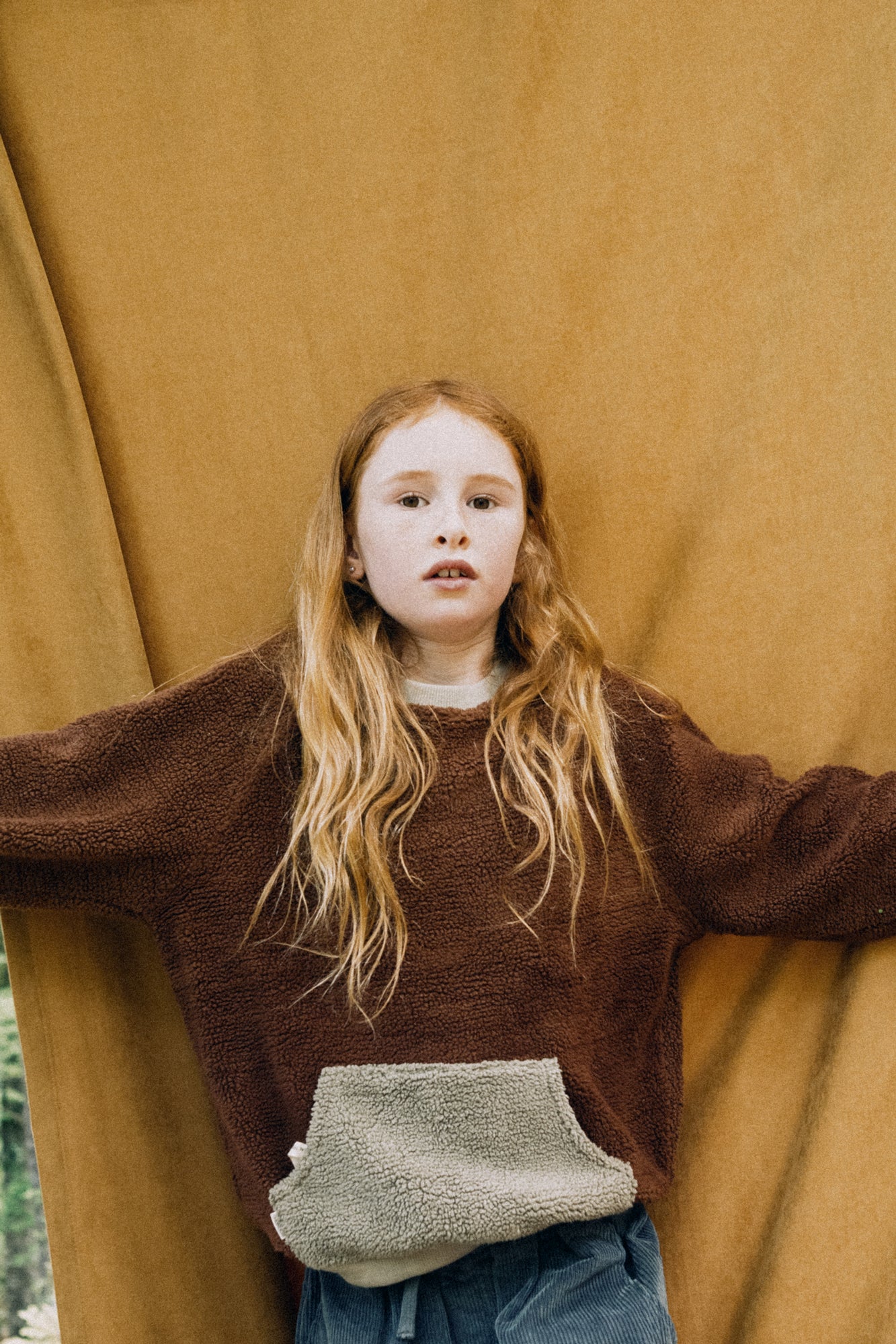 This Sherpa Sweatshirt is the perfect piece for winter—warm, cozy, and designed with care for your little one’s comfort. With a relaxed fit, dropped shoulders, and soft ribbing at the cuffs and hem, it’s made to support free movement and growth. Crafted from 100% GOTS-certified organic cotton Sherpa, the fabric is thick yet lightweight, offering warmth without weighing them down. All our garments are toxin-free and hypoallergenic, carefully crafted to protect and respect your little one’s delicate skin. Brown evokes warmth, connection to the earth, and stability. A cozy and timeless shade that brings balance and depth to any look.