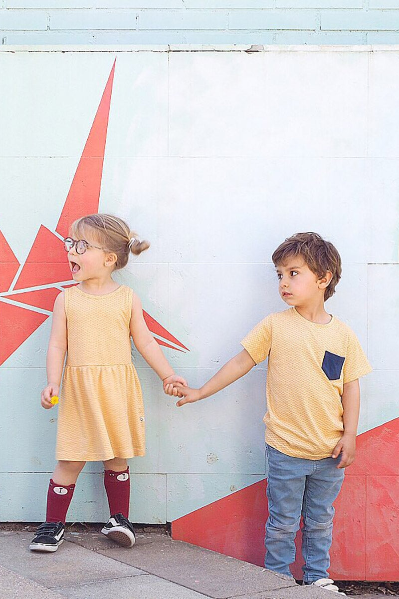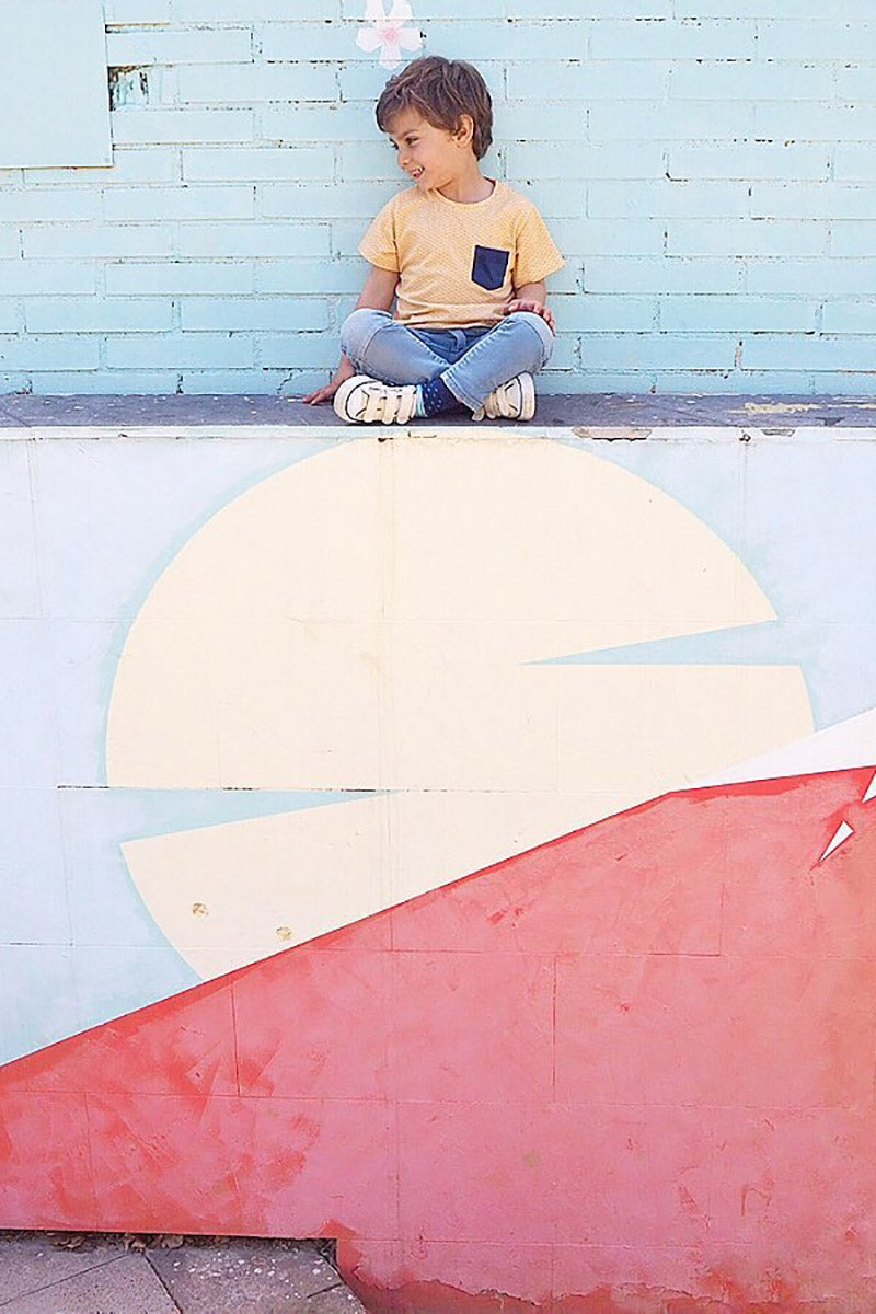 Organic cotton unisex t-shirt with pocket and round neck and short sleeves in honey yellow and japanese. 100% Certified Fair Trade Organic Cotton. Designed with ♥ in Barcelona. Ethically made…