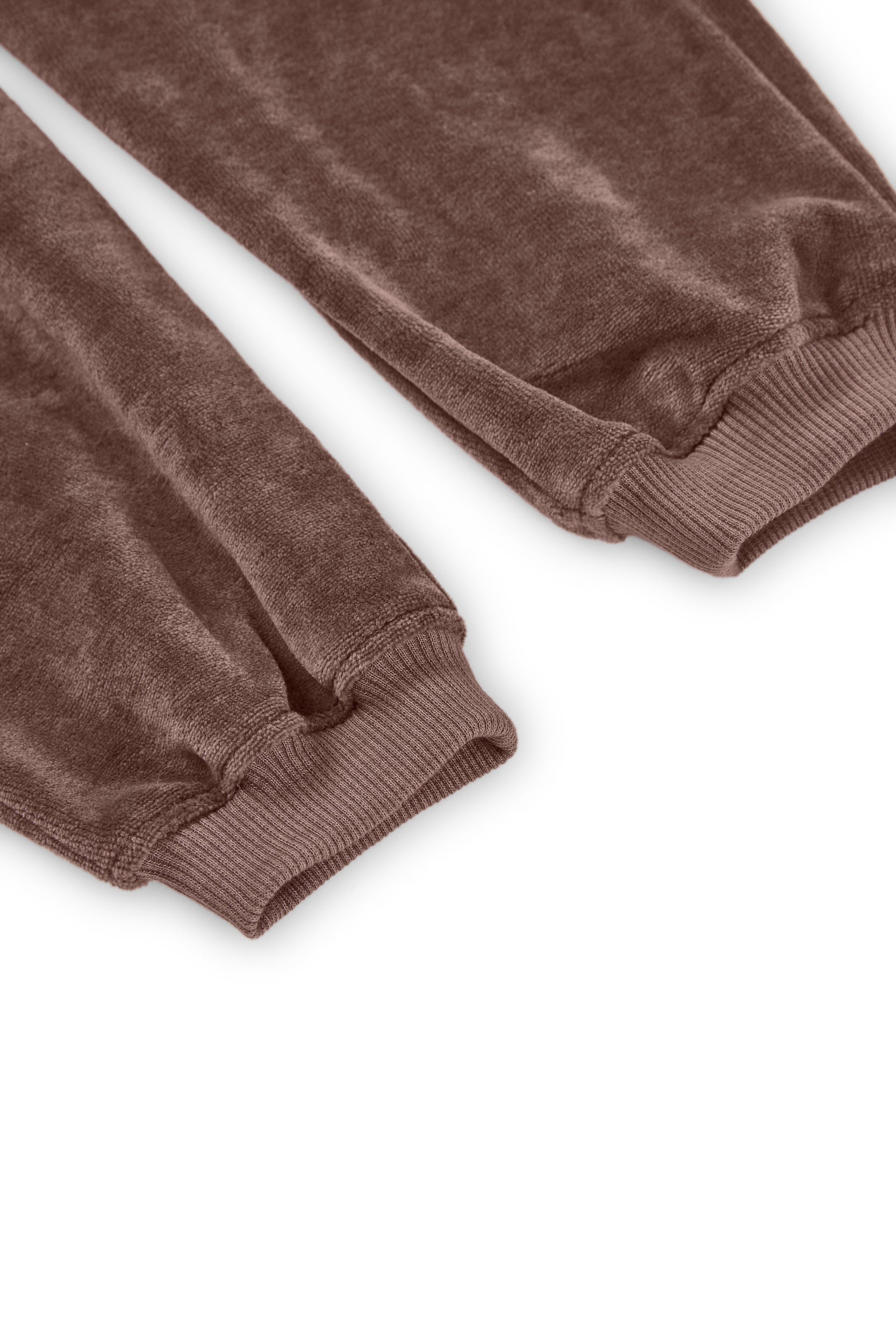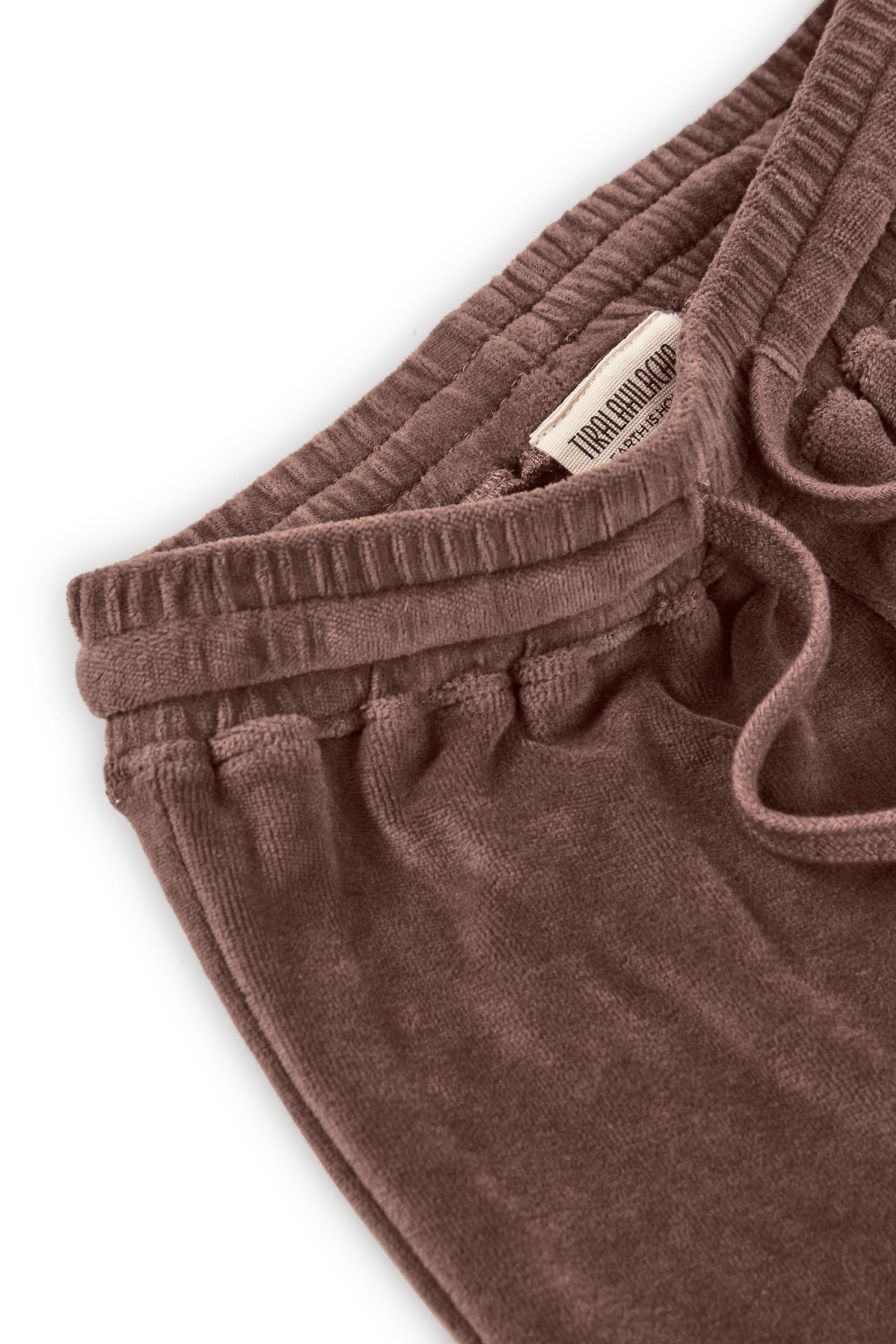 Soft and extra warm, these Baby Pants are made from 100% GOTS-certified organic cotton velour. A versatile piece that pairs effortlessly with many outfits—perfectly matched with our Tina sweatshirt. Designed for free movement, they have a slightly loose fit with gentle elastic and soft ribbing at the waist and ankles for a secure yet comfortable fit. All our baby garments are toxin-free and hypoallergenic, carefully crafted to respect and protect your baby’s delicate skin. This mauve shade evokes calm and delicacy that brings softness to autumn and winter looks.