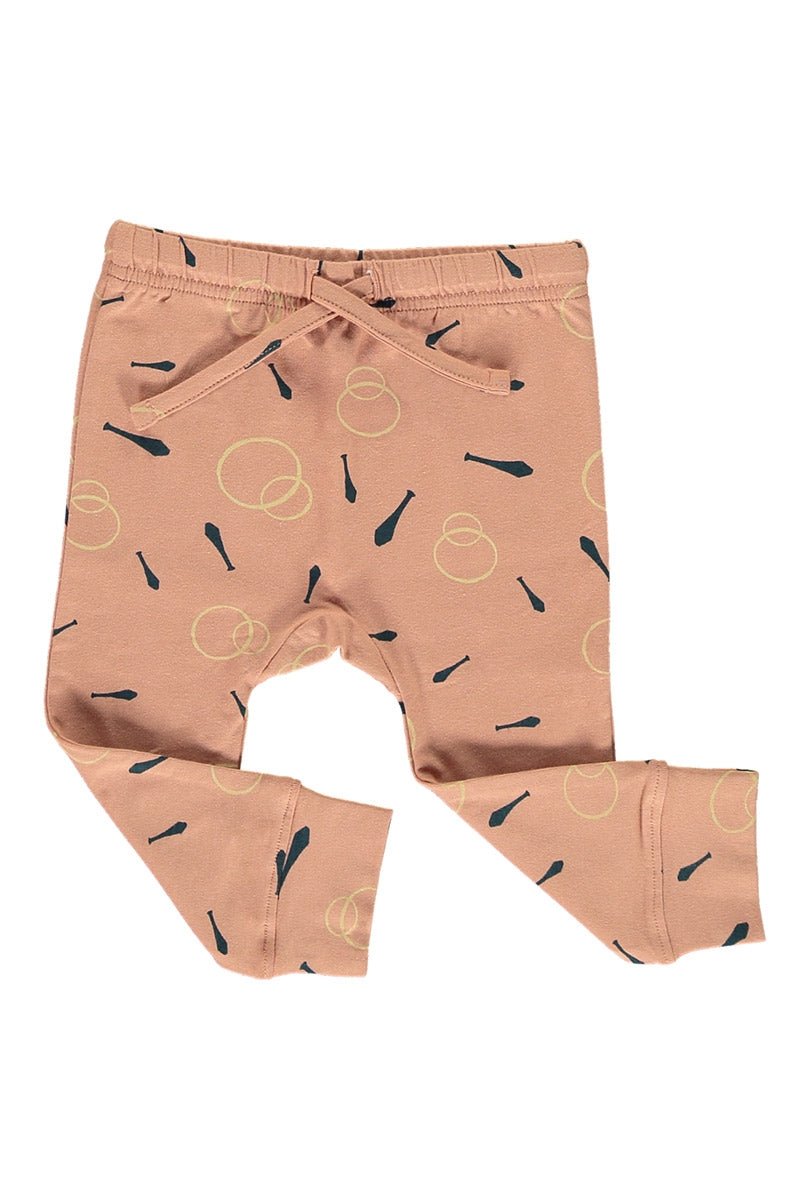 Pantalón para bebé color rosa con estampado de malabares inspirado en Circus. Una prenda básica para meses de entre tiempo. Se ajusta perfecto a cualquier cuerpecito y lleva una cinta en la cintura para mayor ajuste y comodidad.